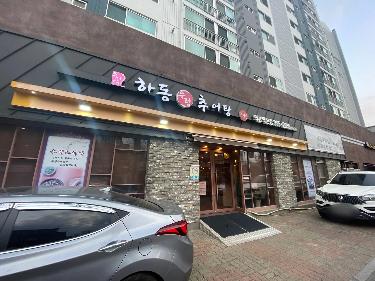 기술했다시피 역촌역을 기준, 들어가 보자. 조금만 가도 좌측, 우측으로 추어탕 집을 만날 수 있는데, '하동우렁추어탕 역촌점'과 '할머니추어탕 은평점'이다. 필자는 '하동우렁추어탕'을 목표로 방문. 매번 사진과 같은 광경인데 식사 중인 기사님들의 차량, 가게 앞에도 손님들의 차가 주차되어 있기 마련. 은근히 가게 앞 공간이 넓어 주차는 수월한 편인 듯하다. 행여나 가득 차더라도 인근 '은평평화공원 지하주차장'에 대면 비용이 조금 나오지만 여유롭게 가능하니 참고하면 좋겠다.