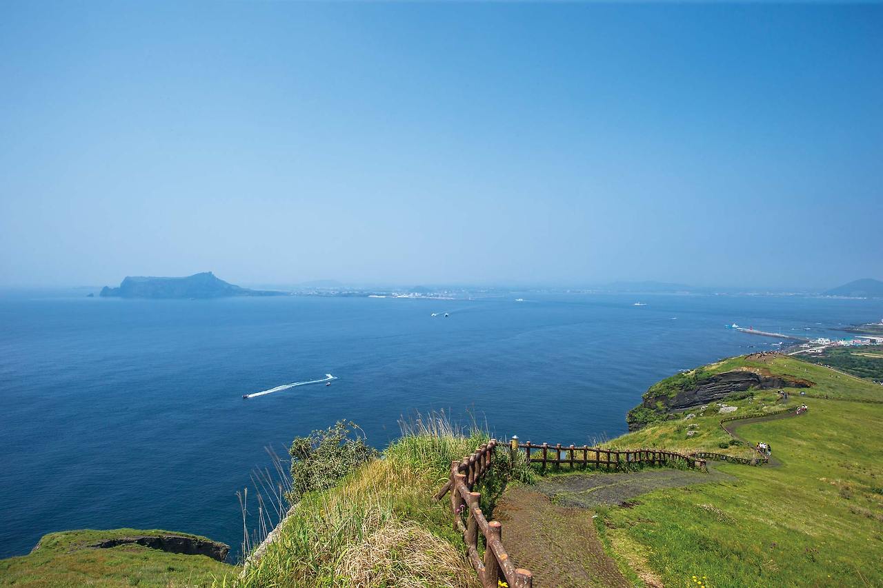 우도봉은 소가 누워 있는 모양을 닮았다고 해서 이름 붙인 우도에서 ‘소의 머리’에 해당하는 부분. 쇠머리오름이라고도 불린다. 해발 132미터의 경사가 완만한 봉우리는 누구나 쉽게 걸어 올라갈 수 있는 난도. 무엇보다 이곳은 우도의 검은 해벽과 짙푸른 바다를 조망할 수 있는 최적의 전망대다. 구불구불한 능선에 조성한 우드 트레일을 따라 느릿느릿 걷는다. 우도봉 올라가는 초입에 제주마(馬)가 관광객을 기다리고 있다. 우도는 조선 숙종 때부터 말을 기르고 관리하기 위해 거주를 허가한 곳이기도 하다. 온순한 성질의 말이지만 베테랑 가이드의 신호에 따라 움직이는 발걸음은 경쾌하다. 체격은 작아도 균형이 잡혀 있고 얼굴이 넓은 게 특징이다. 12세기 몽골제국의 말은 오로지 제주에만 남아 있다고도 한다. 동북아에 외롭게 떨어진 섬이 만든 격리의 결과인 것. 그래서인지 우도봉을 향해 가열차게 달리는 제주마의 뒷모습이 쓸쓸한 듯 아름답다. 용암이 만든 육중한 해벽을 마주하며 제주다움에 대해 생각한다. 소금기와 바람, 짓궂은 풍토에서 살아남은 식물의 생명력과 그들이 완성한 신비로운 풍경 앞에서 경건한 마음이 앞선다. 풍경을 천천히 감상하며 걸어도 왕복 40분에 불과한 짧은 길이지만, 우도의 풍경을 가장 핵심적으로 보여준다는 점에서 꼭 가볼 것을 추천한다. 바람막이 재킷과 자외선 차단제는 필수다.