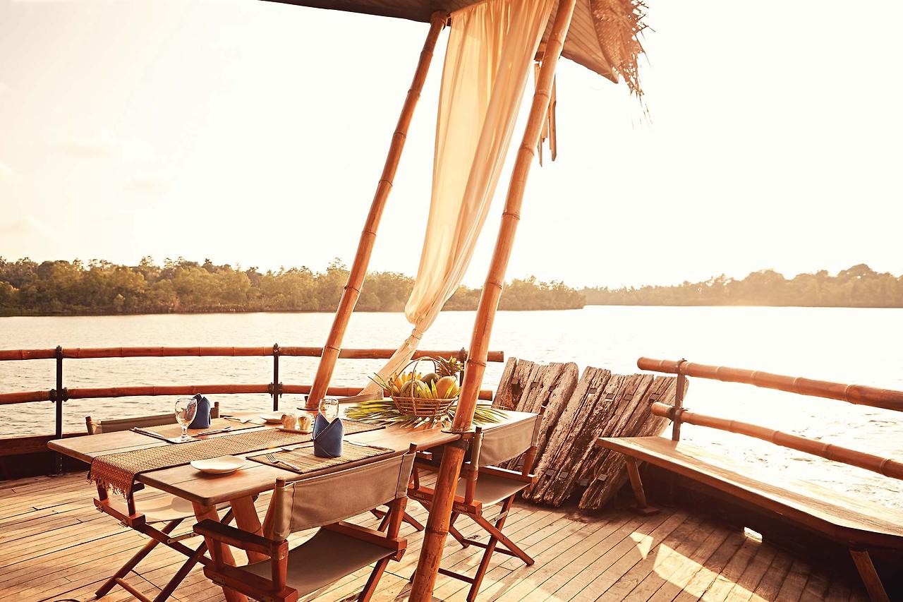 벤토타는 은퇴 후 느긋한 삶을 보내기에 나쁘지 않은 듯하다. 콜롬보에서 차로 2시간 정도 걸리는 작은 해안 도시로 광활한 금빛 해변, 수상 스포츠를 즐기기 좋은 라군과 강으로 인기를 얻고 있다. 지푸라기로 지붕을 엮은 전통 목조선 야트라 바이 제트윙은 스리랑카 최초의 보트 호텔이다. 야외 덱과 부엌, 객실 2개로만 이뤄진 아담한 규모로, 2명의 버틀러와 셰프, 전기 기술자가 상시 대기하며 프라이빗 서비스를 제공한다. 이곳에선 배에 머물며 리버 사파리와 고래 관찰, 악어 사냥 등의 액티비티를 즐길 수 있다. 코랄라지가 저 멀리 망고나무 숲 사이에서 독수리와 암꿩, 원숭이를 차례로 가리킨다. 눈을 부릅뜨고 그의 손가락이 가리키는 쪽을 두리번거리다가 이내 탄성을 지른다. “우리 모두가 강을 존중해요. 이곳은 해 질 때 가장 아름답죠.” 어느덧 어둑한 붉은빛 노을이 강을 물들이고 숲과 독수리와 원숭이 등 온갖 생물은 검은 그림자 속에 숨어버린다. 배가 강 어귀에 정박하자 이미 사위는 어둑해져 있다. “20분 만 있으면 야외 덱에 놓인 테이블에 저녁 식사가 준비될 거예요.” 코랄라지가 미소를 짓고는 사라진다. 전통 스리랑카식 저녁 식사를 기다리며 휘장을 친 침대에 늘어져 있자니, 창밖으로 강 저편에서 멱을 감는 마을 아이들이 보인다.