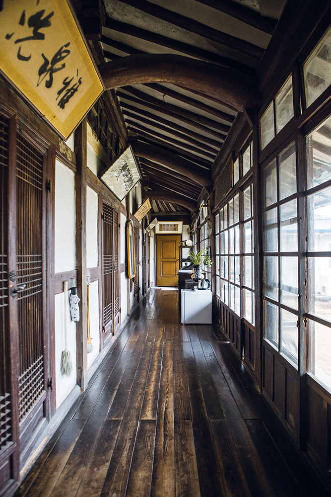 학성강당의 백화주는 정확히 말하면 백초화춘(百草花春)이다. 백 가지 약초로 담근 약초주에 두 번 덧술을 하고, 사계절 동안 따다 모아 그늘에 말린 백 가지 꽃을 넣고 다시 20일을 기다리는 정성으로 빚은 술이다. 현재 학성강당에서는 백화주를 담그지 못하고 있다. 250여 년간 대물림 되는 백화주 비법을 아는 유일한 사람, 청곡 김종회 선생이 자리를 비운 상태라 기존에 담근 것을 몇 병만 보관하고 있다고. 귀한 대접에 감사를 표하며 백화주를 음미한다. 약주처럼 묵직하면서도 향긋하다. 달고, 시고, 쓴 맛이 오묘하게 조화되어 마시고 난 후에도 입안 가득 향기가 남는다. 일제강점기를 거쳐 밀주를 단속하던 시대를 지나며 가양주의 맥이 끊긴 어려운 상황에서 고집스레 전통을 이어온 것은 어떤 마음에서일까. 그것은 단순히 비법에 관한 것이라기보다는 정신과 태도에 관한 것일 테다. 그러는 사이 안채의 문이 열리고, 화석 선생이 걸어 나온다. 아흔이 넘은 춘추에도 정갈한 흰옷을 갖춰 입은 그는 상투머리에 관을 썼다. 손을 모아 크게 인사를 올린 후, 학성강당의 문을 나선다.