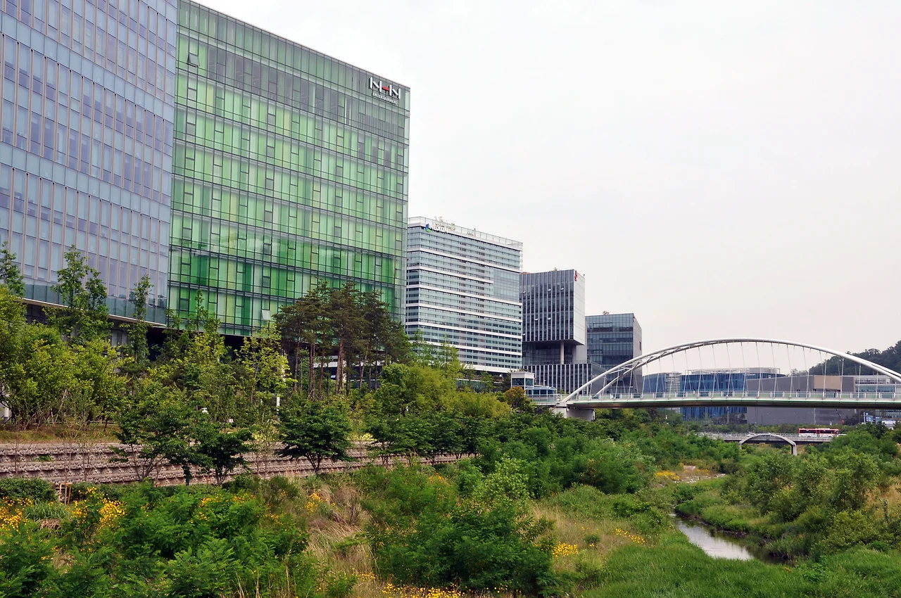 판교 북부에 자리한 판교테크노밸리는 첨단 산업 연구 단지다. 한국건축문화대상과 iF 디자인 어워드를 수상한 건물을 비롯해 수많은 커튼 월 건물이 줄지어 서 있다. 미래 도시를 연상시키는 현대건축을 구경하며 걷는 것만으로도 시간이 훌쩍 간다. 거리마다 자리한 공공 미술은 또 다른 볼거리다. 문화예술진흥법에 따라 연면적 1만 제곱미터를 넘는 건축물은 부지 내 미술 작품을 설치해야 하다 보니, 대형 빌딩이 많은 판교테크노밸리는 곳곳에 공공 미술이 들어선 거대한 야외 미술관을 이룬 것. 테크노밸리에 어울리는 작품의 주제를 좇는 재미도 쏠쏠하다.