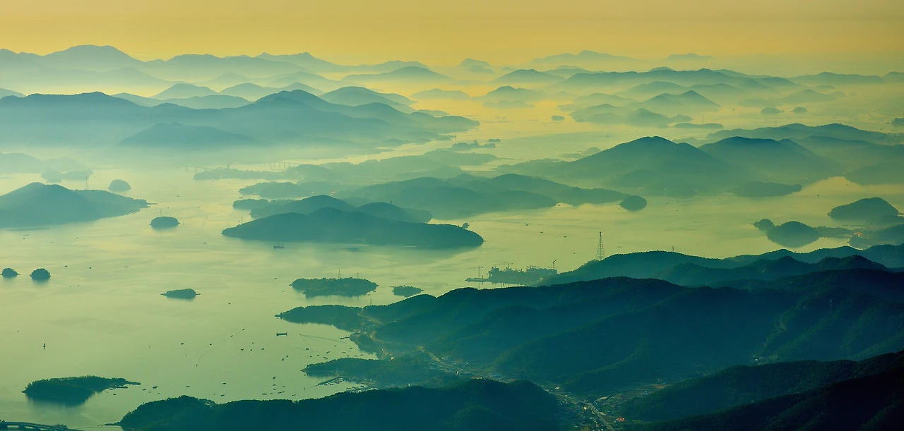 이른 아침 바다를 깨우는 햇살이 수많은 섬과 섬이 중첩된 장관을 연출한다. 남해의 백미는 경남 통영 한산도에서 사천, 남해를 거쳐 전남 여수까지 이어지는 연안수로. 거울처럼 잔잔한 물결, 곳곳에 자리한 섬, 고요한 포구, 한가로이 떠 있는 범선의 경관이 아름다워 1968년 이 일대를 한려해상국립공원으로 지정했다. 섬이 많은 남해의 해안선은 굴곡이 심해 인간이건 짐승이건 물고기건 기댈 곳이 많다.