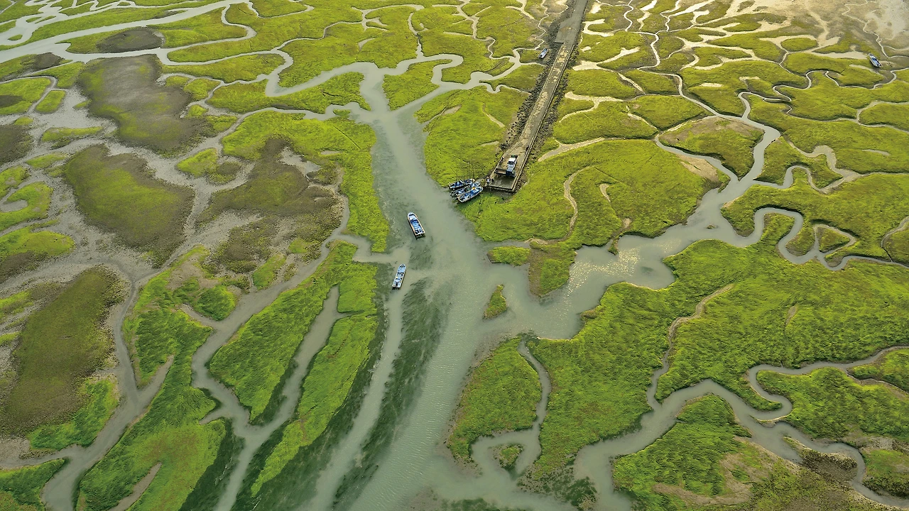 전남 무안의 녹색 갯벌. 복잡한 해안선과 조류가 다채로운 형태의 갯벌 풍광을 빚어낸다. 방조제 같은 인공 구조물을 설치하지 않아 자연의 원시성을 그대로 간직하고 있다. 다양한 생물이 서식해 지질학적 보존 가치가 높을 뿐 아니라 철마다 지역 어민이 낙지와 소라, 바지락, 숭어, 보리새우를 잡아 소득을 얻는 삶의 터전이기도 하다. 녹색 갯벌에서 잡은 무안 낙지는 전국적으로 유명하다.