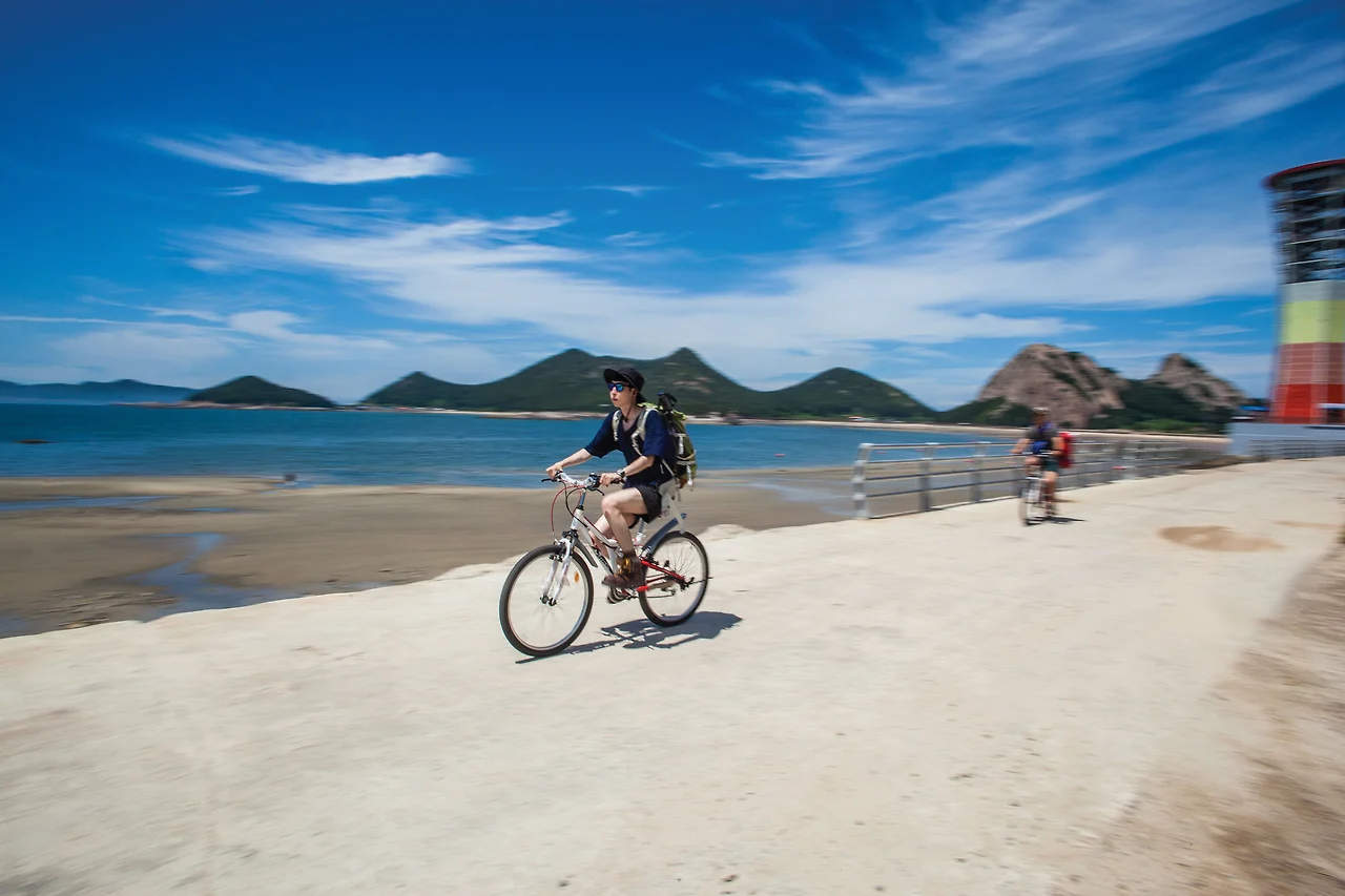 선유도를 중심으로 서쪽의 장자도와 대장도, 남쪽의 무녀도는 하나의 섬처럼 다리로 연결되어 있다. 선유도 선착장 앞으로 스쿠터와 자전거 대여점이 늘어선 이유도 바로 그 때문이다. 외지인이 차를 타고 들어갈 수 없으니 몇몇 민박집에서 운영하는 승합차를 제외하면 섬의 이동 수단이라고는 스쿠터와 자전거뿐이니까. 짐을 싣고 섬 구석구석을 빠르게 누빌 수 있는 스쿠터를 고르는 게 합리적일 테지만, 오늘은 자전거다. 기왕 백패킹에 나선 이상 두 다리에 최대한 의탁하고 싶기에.