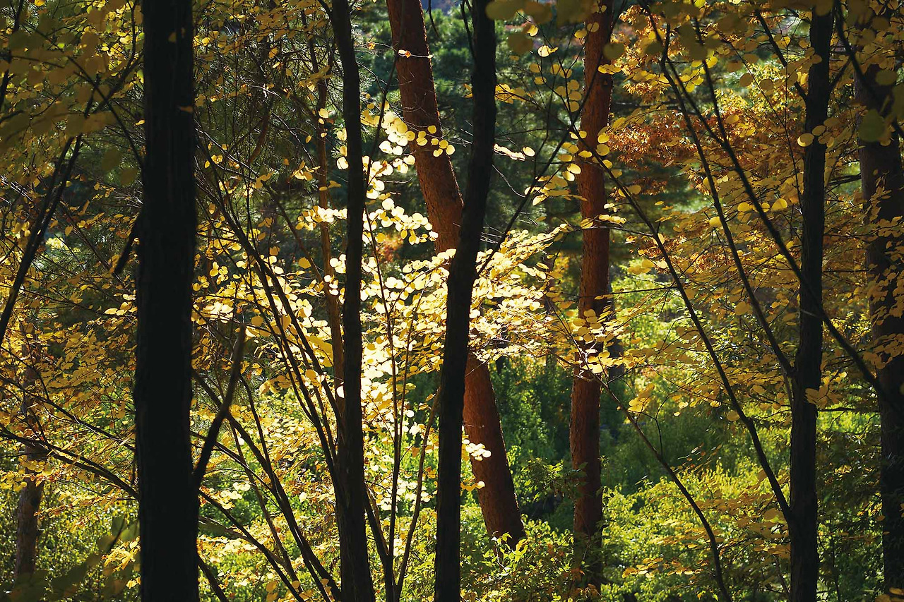 멋진 장소에서 내가 촬영한 사진은 왜 감동이 없을까? 분명 눈으로 보면 화려하고 멋진데 사진으로 담아놓고 보니 밋밋한 이유는? 바로 빛을 제대로 요리하지 못했기 때문이다. 한국에서 가장 아름다운 빛을 경험할 수 있는 계절은 가을. 형형색색의 단풍을 통해 그 빛을 표현할 수 있다. 이 사진은 비가 그친 후 구름이 빛을 가릴 때와 구름 사이로 빛이 투과되었을 때 촬영했다. 같은 장소와 구도, 촬영 데이터지만 빛이 있는 사진이 확연히 아름답다. 풍경을 촬영하는 사진가는 이 빛을 좇아다닌다. 전체를 비추는 환한 빛이 아니라 섬세하고 미약한 빛이다.