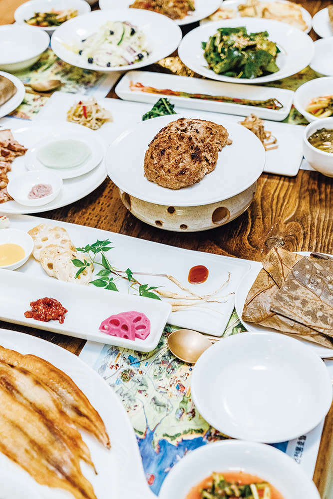 산책하듯 가벼운 마음으로 휘휘 서원을 돌아본 뒤에는 고즈넉한 한옥에서 한상 벌일 차례다. 올봄 서원 초입에 문을 연 문헌전통호텔은 7개의 한옥 객실을 비롯해 한정식을 내는 식당 시우관을 갖췄다. 역모리 부녀회에서 운영하는 이곳에서는 한옥의 정취를 느끼며 식사를 즐기고 호젓하게 하룻밤 보낼 수 있다. 시우관이 선보이는 한정식의 찬 대다수는 서천에서 난 식자재를 사용한다. 나물 두 가지와 김치 두 가지, 전 두 가지를 기본으로 약 스무 가지의 찬이 거나하게 상 위를 채운다. 제철을 맞은 꽃게를 소금에 무친 게장, 기산면에서 재배한 연으로 만든 연근조림과 연잎밥도 눈에 띈다. “서천에서 난 식자재 본연의 맛을 최대한 살리기 위해 조미료는 거의 사용하지 않아요. 꾸준히 서천의 향토 음식을 연구해 메뉴를 추가할 생각이에요.” 문헌전통호텔을 운영하는 이우송 단장이 서천산 말린 박대를 권하며 말한다. 일일이 헤아리기 힘든 찬을 두루 섭렵하려면 젓가락을 부지런히 옮겨야만 한다. 물론 틈틈이 술잔을 채우는 일도 잊지 말자. 오묘한 풍미를 지닌 한산소곡주는 시우관의 담백한 요리와 더없이 잘 어울리니까.