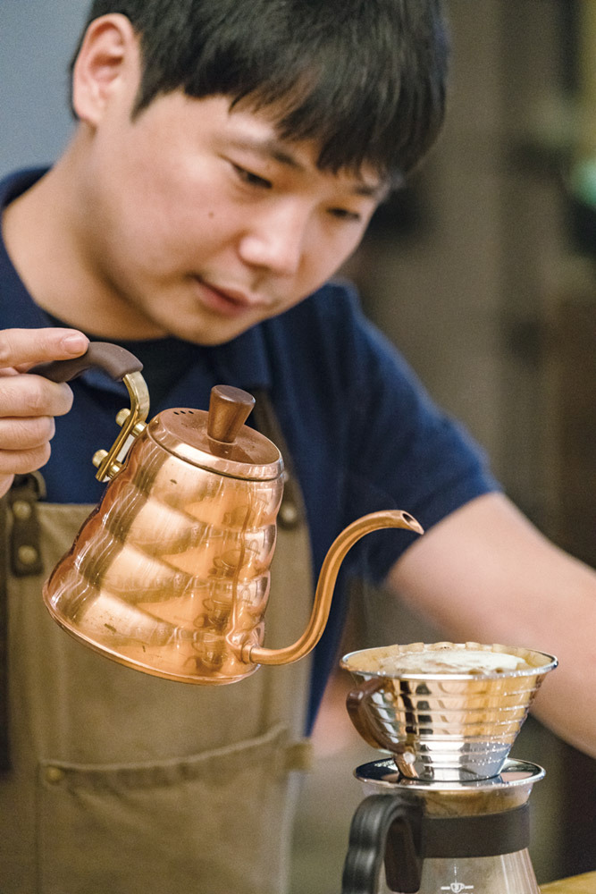 이훈영 대표의 커피 열정은 남다르다. 2년 동안 에티오피아의 커피 농장에서 원두 감별사로 일한 경험을 살려 자신만의 로스팅 기술을 선보인다. 아디스브라운 한쪽 로스팅 룸에서는 참기름을 짜내는 듯한 고소한 향이 연기와 함께 모락모락 피어난다. 이내 타닥타닥 소리를 내며 아카시아꽃 향이 나더니 푸른색 커피콩이 잘 익은 갈색으로 변해 우두두 쏟아져 내린다. “저만의 커피를 통해 소통하는 공간을 만들고 싶어요.” 이훈영 대표가 로스팅 기계 앞에서 당당히 말한다. 이곳에선 핸드 드립 커피를 주문하면 바리스타가 테이블로 직접 찾아와 커피를 내려준다. 손님과 대면하면서 커피 취향과 기호, 맛에 관한 설명을 덧붙이기 위해서다. 아디스브라운이 내는 ‘아날로그식 커피’는 나이 지긋한 노년의 얼굴에도 미소를 머금게 만드는 소통의 맛을 더한 게 분명하다.