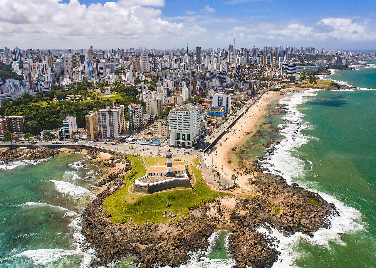 300만 명이 거주하는 매력적인 해안에 자리 잡은 사우바도르는 브라질에서 세 번째로 인구가 많은 도시다. © jeilson / iStockphoto / Getty Images