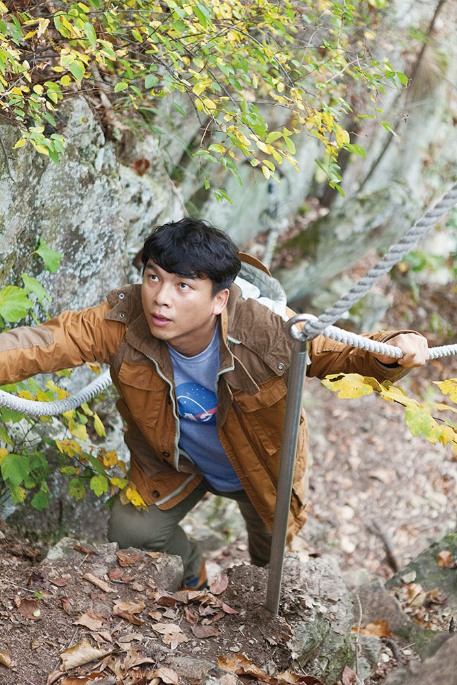 해발 650미터의 비래바위 정상 부근에 이르자 가파른 암벽 코스가 등장한다. 로프를 잡은 채 조심스럽게 바위 위로 발을 내딛기를 10여 분. “마침내 화산이 되지 못한 바위 정상에 올랐습니다.” 문경수 대장이 비래바위 정상에서 외친 뒤 아래로 펼쳐진 풍경을 가만히 응시한다. 저 멀리 빽빽한 침엽수 군락과 조금전 지나친 활엽수 지대가 오묘하게 경계를 이루고 있다. “흡사 인간과 자연이 대결하는 것처럼 보이군요. 인간의 필요에 따라 조림한 침엽수 안으로 스스로 뿌리를 내린 숲은 놀라운 생명력을 지니고 있죠.” 그간 산 정상에 오르면 일말의 성취감을 느끼며 탁 트인 전망을 가벼이 만끽하곤 했다. 그러나 탐험에선 끊임없는 관찰을 통해 좀 더 큰 즐거움과 발견을 누리는 듯하다.