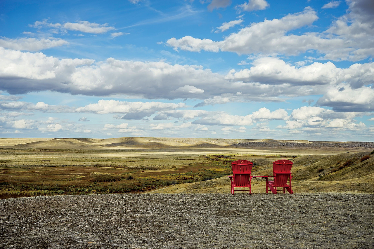 이 일대를 개척한 19세기 말 이주민의 옛 거주지와 그 흔적들. 그래스랜즈 국립공원에 놓인 레드 체어(Red Chair). 캐나다 전역의 국립공원에는 놀라운 풍경을 자랑하는 장소에 쉬어갈 수 있는 빨간 의자를 놓아두었다. ⓒ 허태우
