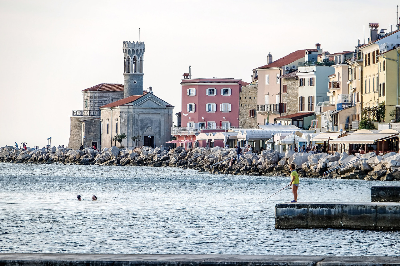 알프스산맥, 지중해, 파노니아 평원, 카르스트 지대를 모두 아우르는 자연 지형은 슬로베니아가 내세우는 큰 자랑거리다. 알레슈가 살짝 격양된 말투로 슬로베니아를 짧게 경유하는 여행자를 안타까워하는 이유도 여기에 있다. 좀 더 정확히 말하자면, 아드리아해를 둘러싼 아름다운 마을 피란을 놓치는 아쉬움같은 거다. 피란은 크로아티아, 이탈리아, 슬로베니아세 도시에 걸친 이스트라반도의 최서단 지점. 슬로베니아의 해안선은 남서부로 뻗은 46.6킬로미터의 연안이 유일한데, 화려한 카지노와 역사 깊은 호텔, 국제공항이 들어선 고급 휴양지 포르토로지(Portorož)에 비하면 피란의 구시가는 구멍가게에 비할 만큼 규모가 작다. 요트가 정박해 있는 항구 인근에 여행객을 쏟아낸 자동차 행렬이 떠나고, 타르티니에브 광장(Tartinijev Trg)까지 느긋한 걸음을 옮긴다. 해가 낮게 깔린 트리에스테(Trieste)만 주변을 빙 두른 15세기 고딕 양식 건축, 돛을 내린 요트, 유유히 낚시를 즐기는 현지인.
