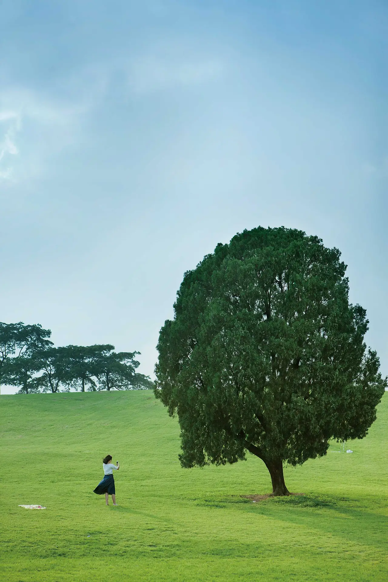올림픽공원은 정말로 낙원일까 아닐까? 여기엔 별의별 게 다 있다. 백제 사람이 이곳의 구릉 지형을 이용해 진흙을 쌓고 해자를 판 지 1,500년 후, 토성은 푸르른 잔디로 뒤덮였고 해자는 호수가 됐다. 그 주변에 경기장과 공연장, 조각 공원, 미술관에 커피숍과 한식 레스토랑까지 생겨났다. 모든 나무와 잔디를 단정하게 가꿨고, 2인용 자전거와 호돌이열차가 산책길을 누비며, 온종일 공원 곳곳의 스피커에서 음악이 흘러나온다. 클래식, 재즈, 팝송, 국악까지 장르도 골고루. 여기 오면 모두가 각자 원하는 것을 찾을 수 있을 듯하다. 오늘 우리가 찾는 것은 경치가 멋진 풀밭. 올림픽공원이 낙원이 맞다면 그 증거는 몽촌토성이다. 완만하고 푸른 구릉이 멜로디처럼 오르락내리락 펼쳐지는데, 길이가 2.7킬로미터에 이른다. 그중 가장 규모가 큰 구릉은 한복판에 ‘나홀로나무’가 덩그러니 서 있는 그림 같은 풍경으로, 최근 유명해지기 시작했다. 여름과 가을을 맞아 토성의 잔디를 개방하니 천국의 동산에서 피크닉을 즐길 기회. 슬슬 걸어 나무가 있는 구릉에 도착하자 비현실적인 광경이 나타난다. 푸른 하늘 아래 드넓은 초원. 스커트와 블라우스를 곱게 차려입은 여자아이들이 깔깔거리며 사진을 찍고 있다. 곳곳에 담요를 펼쳐놓고 앉아 속삭이는 연인, 홀로 독서에 열중한 이도 보인다.