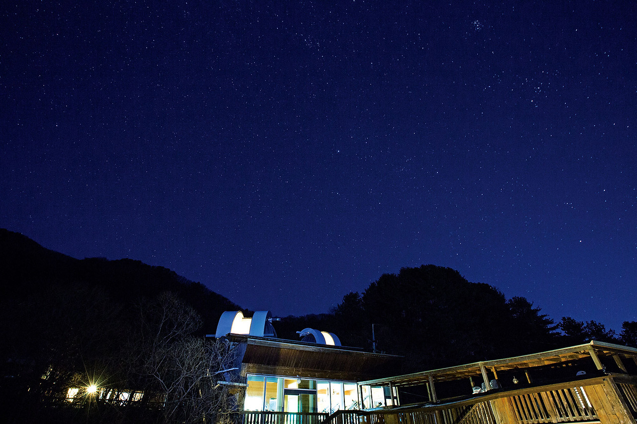 “20여 년 전 이곳에 왔을 때는 그야말로 빛 한 줄기 찾아볼 수 없었죠.” 전원 생활을 갈망하던 김상종 씨는 인적이 드문 명지산 중턱의 임야를 사들여 손수 자신이 머물 집을 지었다. 밤이 되면 하늘을 가득 채우는 무수한 별을 감상하던 그는 어릴 적 자신이 품은 꿈을 차근차근 실현해나갔다. “열 살 때부터 별 관측에 대한 막연한 호기심이 있었어요. 직접 망원경 렌즈를 만들어보기도 했죠. 당시만 해도 천체망원경을 구경하는 일이 쉽지 않았으니까요.” 천문학을 전공하지 않은 그는 취미 삼아 망원경을 하나 둘 수집했고, 급기야 통나무집 위에 돔형 관측실을 세우기에 이른다. 이후 숙소를 갖춘 사설 천문대로 운영하며 체계적인 별자리 관측 프로그램을 시작했다.