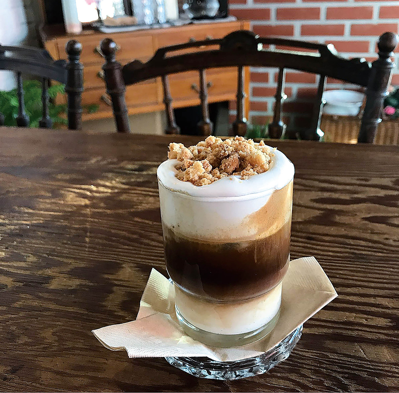 고풍스러운 자개장, 손때 묻은 목재 테이블 등 빈티지 가구와 싱그러운 식물로 꾸민 카페 양각리는 인스타그래머블한 비주얼로 시선을 사로잡는 곳이다. 작은 소품부터 조명 하나까지 공들인 흔적이 역력하다. 프랑스산 화이트 초콜릿을 넣은 라테 양각리 피오나와 마스카르포네 크림치즈, 딸기 퓌레 등을 얹은 페이스트리가 인기 메뉴다. 양각리 피오나 6,500원, 인스타그램 @ cafe_yanggakri