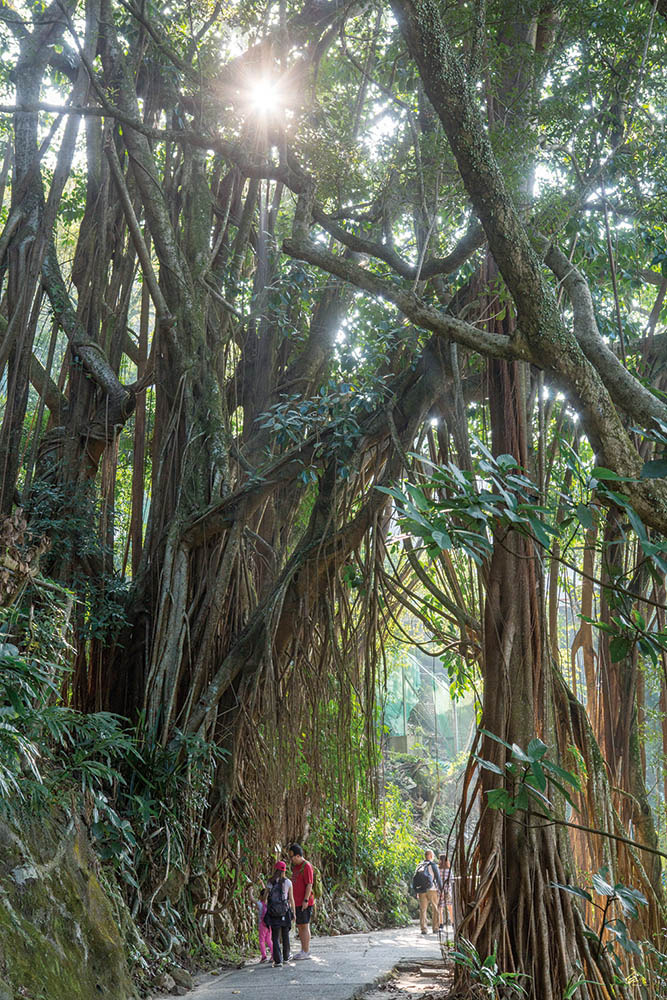 가볍게 걸으며 다채로운 풍경을 보고 싶다면 더 피크부터 룽푸샨 컨트리 파크(Lung Fu Shan Country Park)까지 2시간짜리 코스를 택하자. 화창한 주말, 트레일은 가족 여행객으로 북적거린다. 도심 한가운데라는 사실을 잊을 만큼 울창한 숲속을 걷다 보니 홍콩의 14대 총독 이름을 딴 루가드 로드(Lugard Road)에 이른다. 아찔한 절벽 아래로 홍콩섬의 빌딩숲과 빅토리아 항구 너머 카우룽 반도까지, 홍콩의 지형이 파노라마처럼 펼쳐진다. 하이킹의 끝자락, 룽푸샨 컨트리 파크의 소담한 오솔길을 걸을 무렵에는 살짝 아쉬움마저 든다. 위압적인 마천루를 내내 발밑에 두고 걷는 경험은 아마도 쉽게 잊히지 않을 것이다.