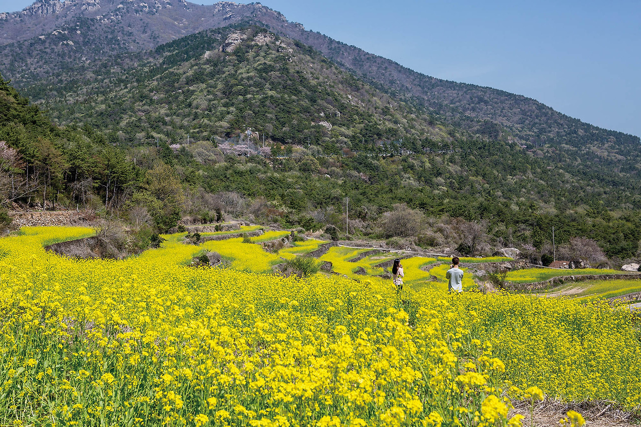 버스로 돌아온 옆자리 할아버지가 앙금빵 봉지를 내 쪽으로 내민다. 뻑뻑한 앙금빵을 해치우자 또 하나를 권하고, 사양하기 싸움에서 진 대가로 2개째 먹는다. 하동에서 마지막으로 정차한 버스는 곧 위풍당당한 붉은빛 남해대교를 건넌다. 1973년 이 다리를 놓은 이래로 남해가 섬이라는 사실은 종종 간과됐다. 그래도 섬은 섬. 반짝이는 파란 바다를 몇 초 만에 건너자 거기서부터는 딴 세상이다. 오밀조밀한 구릉 사이로 연둣빛 논밭과 마을이 구르듯 펼쳐진다. 모든 것이 희부연 봄 공기에 휩싸여 있다. 어쩌면 미세먼지가 이곳에서까지 기승을 부리는 탓인지도.