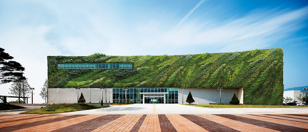 위부터 쓰레기 매립지를 복원한 을숙도 습지에는 매년 10만여 마리의 철새가 찾아온다. 부산현대미술관 개관과 함께 선보이는 패트릭 블랑의 ‘수직 정원'. ⓒNAKDONG ESTUARY ECO CENTER OF BUSAN METROPOLITAN CITY, MUSEUM OF CONTEMPORARY ART BUSAN