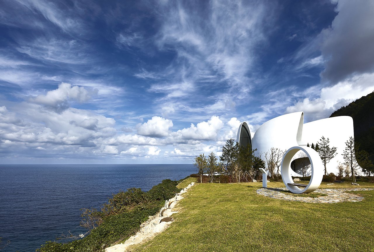 천혜의 비경을 간직한 섬 울릉도에서 남다른 하룻밤을 경험해보자. 송곳처럼 뾰족하게 솟아오른 송곳산 자락에 세운 부티크 리조트 코스모스(KOSMOS)에서 말이다. 춤을 추듯 유려한 곡선을 그리는 나선형 파사드, 벽과 지붕의 경계가 사라진 둥근 형태로 이뤄진 이곳의 객실에서는 250만 년 전화산 폭발로 형성된 송곳봉과 코끼리바위 등 울릉도가 품은 원시적 풍광이 자연스럽게 펼쳐진다. 실험적 디자인을 선보이는 김찬중 건축가가 건물이 아닌 ‘기’를 담는 그릇이라 여기며 설계했다고. 그는 천문기상대의 컴퓨터를 이용해 해와 달, 별의 움직임을 파악한 뒤, 그 궤적을 땅에 옮기는 작업을 통해 독특한 건축 디자인을 완성시켰다. 리조트 1층에 위치한 카페 울라(Café Ulla)에서는 투숙객에게 아카시아꽃전과 부지깽이김치, 추산미역국 등 울릉도의 제철 식자재와 특산물을 이용한 조식을 제공하며, 콜드 브루 커피를 캔에 담아내는 서비스도 제공한다. 호젓하게 주변 자연에 파묻히려는 휴양객은 물론, 성인봉 원시림, 신령약수터, 관음도 등 울릉도 북면으로 트레킹을 떠나는 이에게 이상적인 휴식처가 될 듯하다.