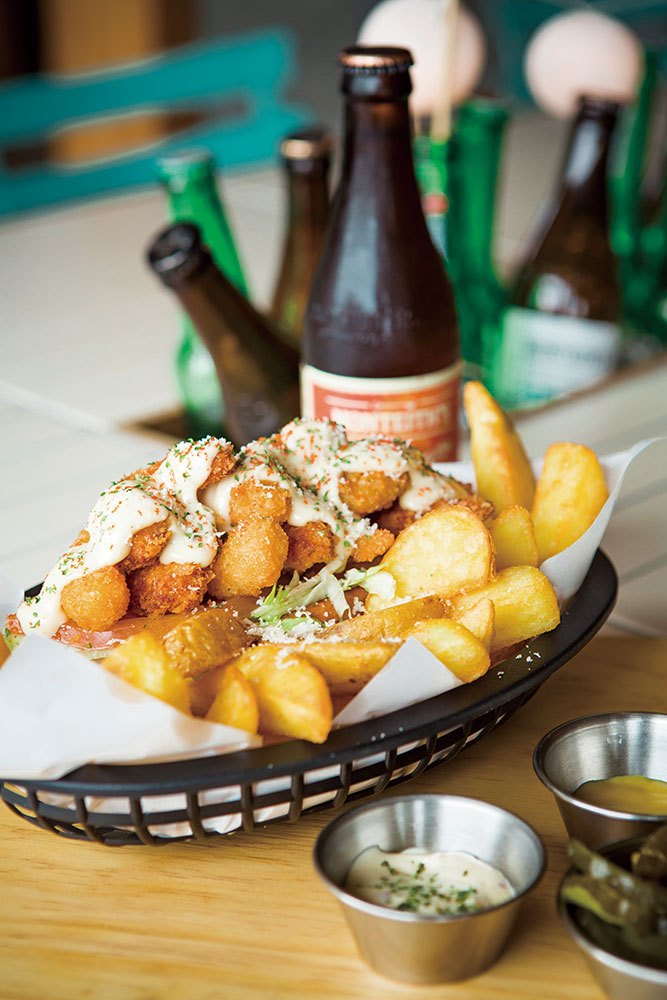 제이 씨는 과거 사이판의 한 리조트에서 액티비티 강사로 활동한 바 있다. “한국으로 돌아온 뒤에도 바다를 곁에 두고 느긋하게 살고 싶었어요.” 곽지해변에 정착해 그레이를 운영하기 시작한 그는 내일이 오픈한 지 딱 1주년이 된다고 말한다. 나무를 깎아 제작한 카버보드 진열대와 서프보드로 멋스럽게 꾸민 1층의 카페 겸 펍의 시그너처 메뉴는 소나이 샌드위치. “소나이는 제주 방언으로 사나이를 뜻하죠.” 미국 루이지애나의 서퍼가 즐겨 먹는 슈림프 포보이 샌드위치에서 착안한 이 메뉴는 한라봉 레물라드 소스를 가미해 맛이 상큼하다. 카버보드 라이딩의 마무리로도 제격이다.