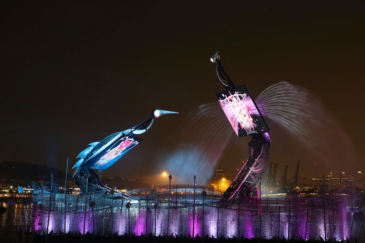 애니매트로닉스(Animatronics) 쇼. 생소하기 짝이 없는 이 단어만으로는 도무지 그림이 그려지지 않는다. 뜻을 풀이하면 로봇을 원격 조작해 선보이는 공연인데, 과연 기계가 펼쳐내는 무대가 얼마나 큰 감흥을 줄 수 있을지. 공연 시각이 가까워질수록 리조트 월드 센토사 내에 있는 워터프런트 일대에 꽤 많은 인파가 모여 든다. 계단식 야외 좌석은 빈틈없이 가득 찼다. 음악이 흘러나오자 정면의 무대 상단이 분리되기 시작한다. 잠시 후 눈앞에 서 있는 것은 높이 30미터에 이르는 거대한 새 2마리! 뾰족한 부리와 물줄기로 형상화한 날개, 우아한 몸짓까지, 영락없는 학이다.