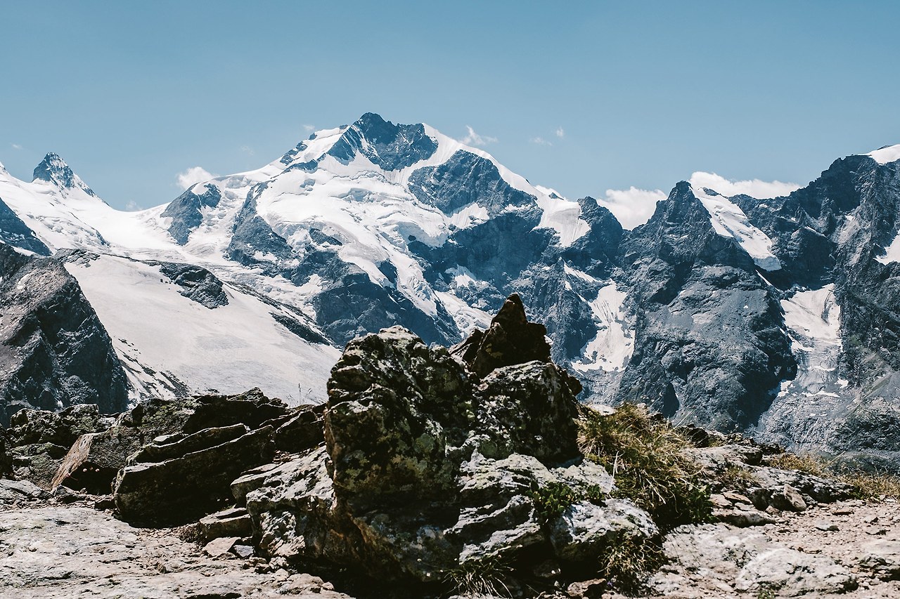디아볼레차 정상 인근까지 케이블카를 타고 갈 수 있다. 기묘하고 기괴한 매력을 지닌 산이다. 이곳을 깊이 느끼고 싶어 인적이 드문 조용한 곳을 찾았다. 큰 바위 밑 그늘에 앉으려고 보니 에델바이스가 있어 그 옆에 조심스레 앉아 산봉우리를 면밀히 관찰했다. 피츠 팔뤼(Piz Palü), 벨라비스타(Bellavista), 크레스트 아구자(Crest’ Aguzza), 피츠 베르니나(Piz Bernina)까지 꼼꼼히 들여다보며 초 망원렌즈로 비슷비슷한 사진을 수백 장 찍었다. 자세히 들여다보면 전부 다르지만. 빨리 움직이는 것은 빨리 사라졌고 멈춰 있던 것은 여전히 사진에 남아 있다.