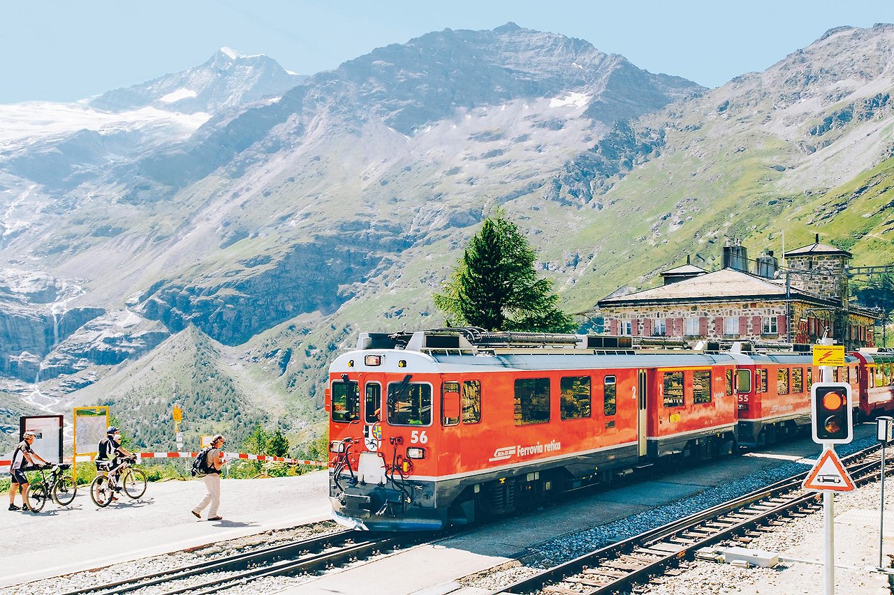 루가노역에서 티라노역까지 운행하는 베르니나 투어 버스를 탔다. 티라노로 가는 길에 이탈리아 북부의 그 유명한 코모 호수(Lake Como)가 나온다. 무솔리니가 이곳에서 숨어 지내다 루가노로 넘어갔다고 하는. 출발한 지 약 2시간 30분 후 작은 티라노역에 도착했다. 티라노에서 드디어 베르니나 익스프레스가 출발했다. 기차는 매우 힘차게 해발 2,091미터의 알프 그 륌역(Bahnhof Alp Grüm)까지 올라간다. 한라산 정상보다 높게 기차가 올라간다고 상상하니 진짜 높다! 알프그륌까지 가는 길에 360도로 회전하는 브루시오(Brusio) 철교가 나오는데 애써 찍지 않았다. 다만 사람들은 기차가 지나갈 때 기차 안에 있는 사람들에게 웃으며 손을 흔들었다. 별것 아닌데 진짜 좋았다. 유명한 고전 영화의 대사가 떠오른다. “밖에서 기차를 볼 게 아니라 기차 안에서 밖을 봐야 합니다!” 믿을 수 없는 풍경을 품은 알프 그륌역에 도착했다. 그러나 한창 공사 중…. 공사장 풍경을 지나자 이탈리아어로 ‘악마 같은 여자’라는 뜻의 디아볼레차(Diavolezza)라는 기묘한 산이 나왔다. 전설에 따르면 먼 옛날 이 산에 아름다운 요정이 살았는데, 사람들을 잘못 안내하는 바람에 영원히 사라졌다고 한다.
