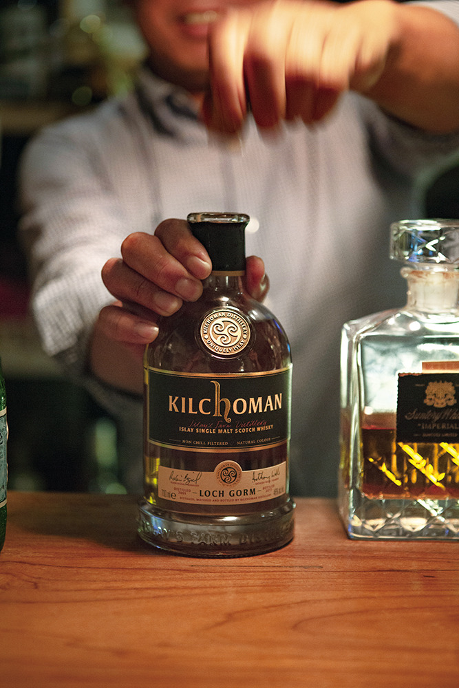 별도의 메뉴판이 없는 모티에선 마스터가 손님의 취향을 묻는 방식으로 주문이 이뤄진다. 조태진 씨가 가장 먼저 추천한 위스키는 산토리와 니카의 올드 위스키. “일본의 오래된 위스키는 각기 다른 매력이 있어요. 산토리가 일본인의 취향에 맞춰왔다면, 니카는 우직하게 스코틀랜드식 위스키를 구현해냈죠.” 조태진 씨가 왼손에 장갑을 끼고, 스포이드로 물 1방울을 떨어뜨려 풍미를 더한 위스키 한 잔에는 저마다 다른 이야기가 담겨 있다. 다음은 이탄의 향이 코끝을 강하게 자극하는 스코틀랜드 아일레이섬(Isle of Islay)의 싱글 몰트위스키와 대면할 차례다. “킬호먼(Kilchoman)은 아일레이에 문을 연 마지막 증류소였어요. 현재는 크래프트 싱글 몰트위스키로 수많은 마니아를 거느리고 있죠.” 김종관 감독은 호박 빛깔이 감도는 몰트위스키를 흡족하게 음미한다. 흥미진진한 이야기와 채우고 덜어내길 반복하는 위스키 잔. 그렇게 수정동의 어느 지하실을 메운 서늘한 공기는 조금씩 따스하게 데워진다.