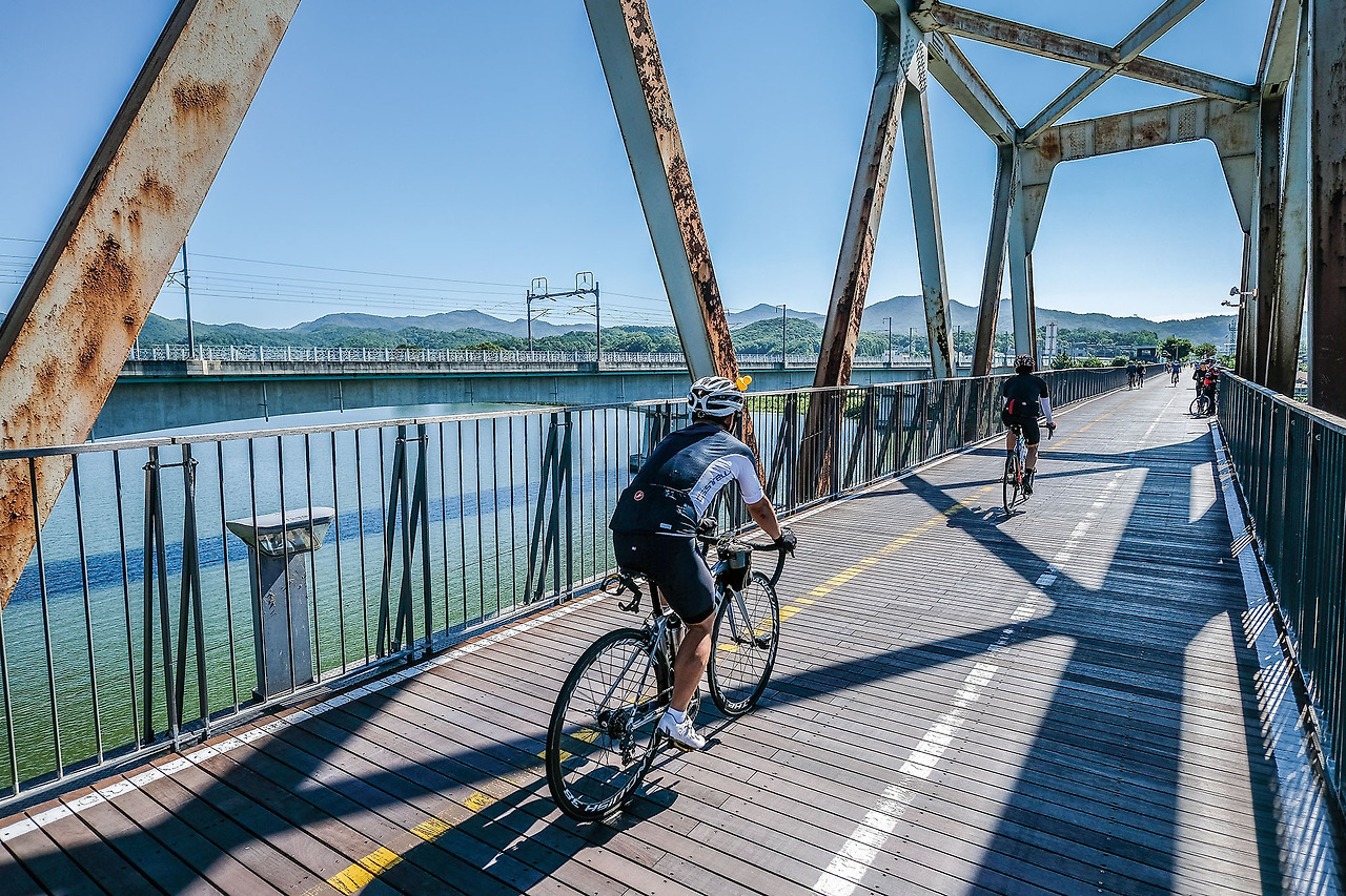 양평에 있는 자전거도로는 ‘남한강 자전거길’에 속한다. 2011년 대한민국 국민 절반인 2,400만 명의 건강과 편의를 위해 수도권에 자전거도로를 조성하기 시작했다. 이름하여 ‘한강 자전거길’. 서울에서 고양·하남·구리·남양주로 이어지는 구간이며, 총 240킬로미터에 이른다. 코스는 지금도 계속 늘어난다. 남한강 자전거길은 남양주 팔당역에서 출발해 양평역을 지나 충주 탄금대로 이어지는 약 140킬로미터 구간이다. 남한강 변의 아름다운 자연환경과 두물머리, 세미원, 옥천 냉면 마을, 양평 5일장 등의 여행지와 함께 즐길 수 있어 라이더에게 인기가 높다. 그중 양평 코스는 북한강 철교에서 시작해 양평을 잇는 18.3킬로미터 구간. 거리는 짧지만 대부분의 명소가 이곳에 있을 만큼 풍광이 뛰어나고, 초심자가 도전하기에도 어렵지 않다. 관광하러 왔다가 라이딩을 즐겨도 좋을 정도다. 소문이 자자한 터라 기대감도 충만하다.
