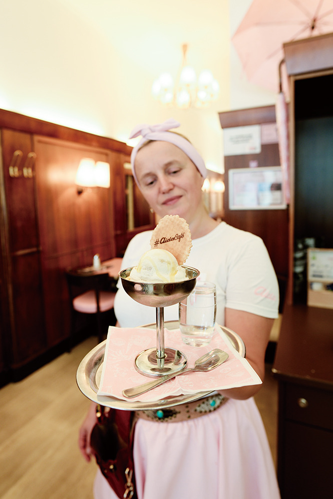 고정관념에서 벗어난 슈트루델을 빨리 만나고 싶은 나는 아펠슈트루델 아이스(apfelstrudel eis, 아펠슈트루델 아이스크림)를 파는 1950년대 카페 아이다(Aida)로 향한다. 차가운 선데 컵에 담겨 나온 아이스크림은 부드럽고 크림 맛이 풍부하며, 버번 바닐라의 강한 맛과 사과 덩어리의 새콤한 맛이 응축돼 있다. 맛은 꽤 훌륭하지만 과연 이것을 슈트루델이라 할 수 있을까? 아닌 것 같다.
