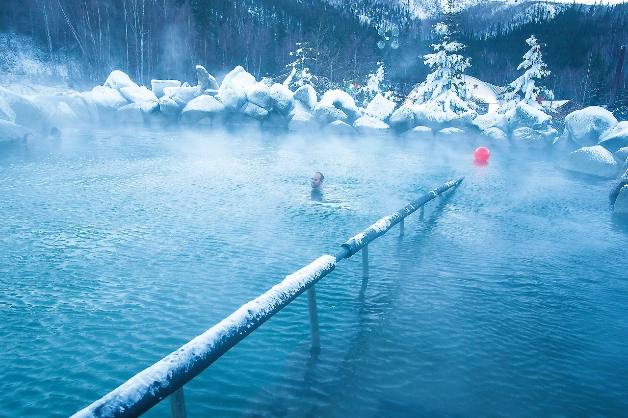 가이거의 말처럼 알래스카의 자연과 문화는 진정한 매력 덩어리다. 때로 이 두 요소가 독특하게 결합하는 경우도 있는데, 페어뱅크스에서 차로 1시간 30분 떨어진 체나 핫 스프링스 리조트(Chena Hot Springs Resort)에 가보면 무슨 의미인지 알 수 있을 것이다. 체나 핫 스프링스 리조트는 이름처럼 온천 지대에 자리 잡은 은둔형 휴양 단지다. 1905년 류머티즘을 앓던 한 남자도 인적이라고는 하나 없는 이 근방을 헤매다 온천을 찾아냈는데, 온천수가 꽤 효과가 좋았던 모양이다. 1911년에 벌써 온천 방문자용 숙소가 문을 열어서 100년 넘게 추위를 피해 찾은 여행객을 맞이해왔다.