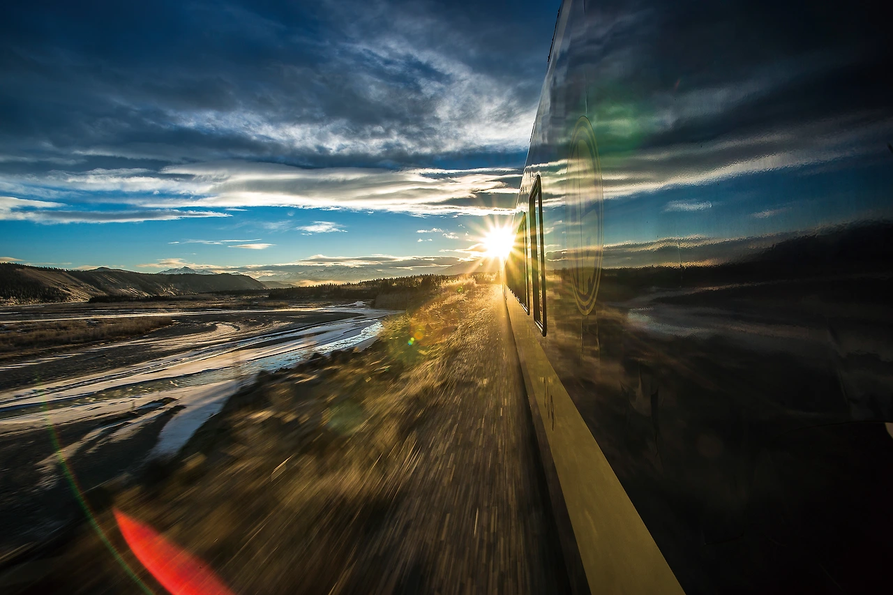 객차 창밖으로 그저 헐벗은 침엽수만 보이는가 싶더니 어느새 대자연의 극적인 풍경이 시작된다. 페어뱅크스의 알래스카 레일로드(Alaska Railroad) 역을 출발한 지 2시간 정도 지났을 것이다. 기차가 네나나 강(Nenana River) 주변의 거친 벌판을 지나 알래스카 산맥과 데날리 국립공원(Denali National Park)에 가까워지자, 주변 풍경이 지구 상의 모든 지질학 요소가 중첩된 것처럼 바뀐다. 유빙이 흐르는 지류와 경사가 심한 계곡을 번갈아가며 지나칠 때마다 승객들은 카메라를 들었다 놨다 한다. 저 멀리에는 알래스카 산맥의 숱한 봉우리가 흰 눈에 덮여 도열해 있다. 직사각형으로 된 객실 창문이 낭만주의자가 붓질한 캔버스로 느껴진다.