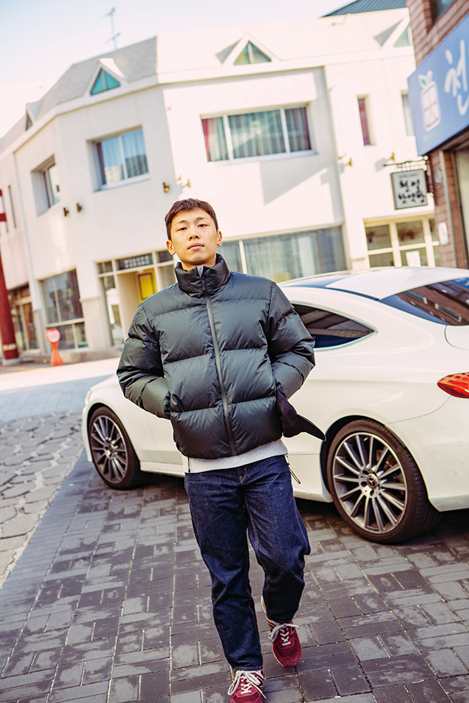 주택가 사이로 세련된 카페와 바가 삼삼오오 들어서고 있는 삼덕동으로 향한다. 오래된 단층 가정집을 개조한 이에커피가 여정의 마지막 장소다. 대구에 올 때 빼놓지 않고 들르는 카페에서 죠지는 골든 레트리버 보리와 놀아주고, 우연히 만난 동갑내기 팬들과 이야기를 나눈다. 이윽고 모두 떠나가고 죠지는 홀로 남는다. “나른하네요.” 그가 정말 나른한 얼굴로 두어 번 말한다. 긴 하루가 끝나간다. 따뜻한 조명이 그를 비 춘다. “이런 집에 사는 것도 좋을 것 같아요. 마당이 딸린 조그마한 주택. 개도 기르고 싶고요.” 어릴 적 다녔던 영어 학원 이름에서 무심히 예명을 따온 데서 유추할 수 있듯 그는 신년 계획을 세우는 스타일이 아니다. 어쩌면 내년에 운전면허를 딸 수도 있겠지만. 그럼 지금 가장 하고 싶은 건? “얼른 음악 작업을 하고 싶어요. 조만간 싱글 앨범을 낼 계획이에요.” 그는 자신의 음악을 특정한 장르에 묶어놓고 싶지는 않다고 말한다. 그가 원하는 건 ‘Boat’의 가사대로 “파도를 따라 흘러가는” 것이다. 당연한 얘기지만, 그건 자신에 대한 확고한 믿음이 필요한 일이다.