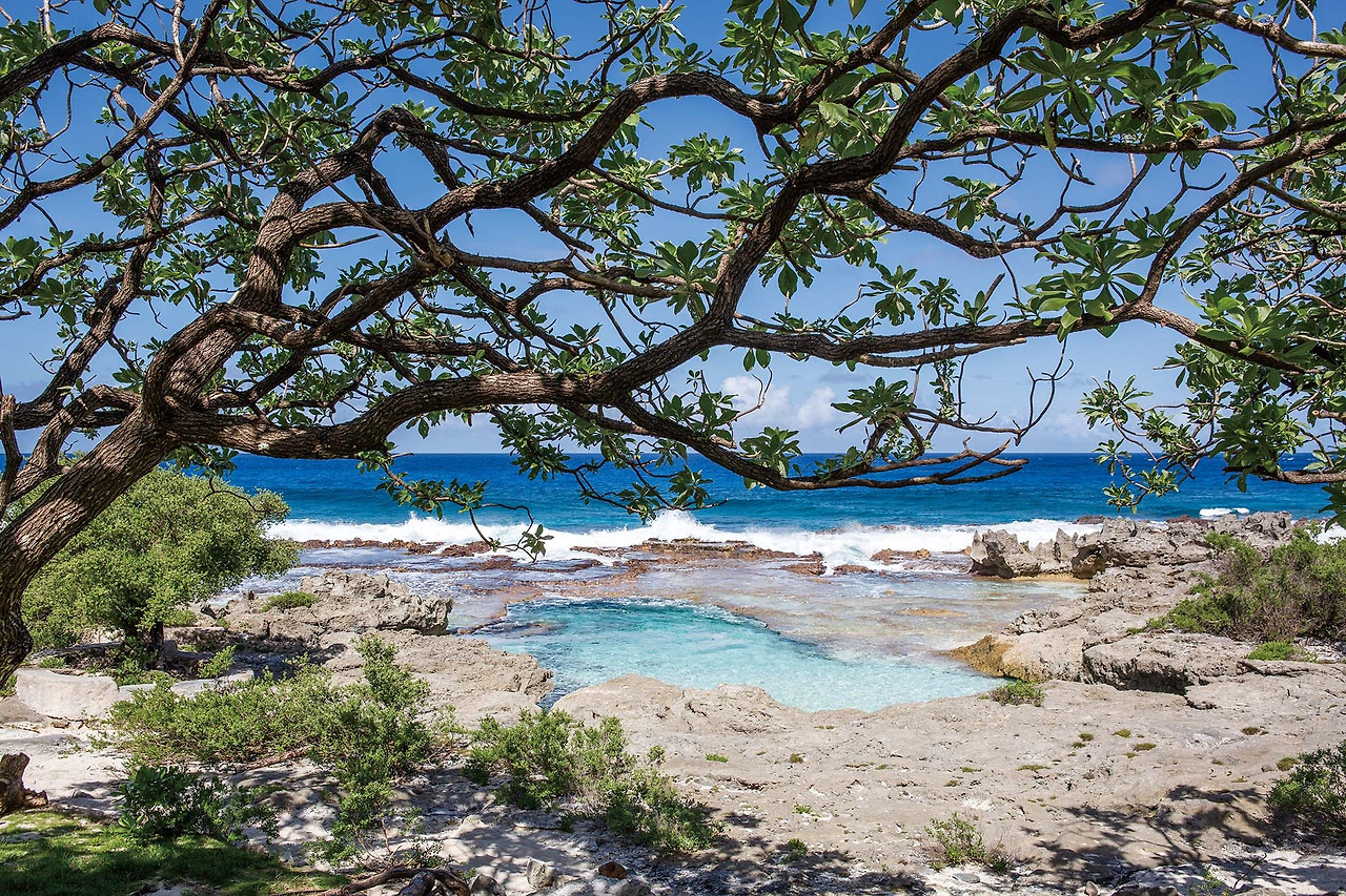 그림 같은 야자수가 늘어선 해안 도로와 파도 치는 절벽 그리고 보랏빛 석양. 북마리아나 제도를 대표하는 두 섬의 숨은 절경을 찾아 드라이브를 시작하자.