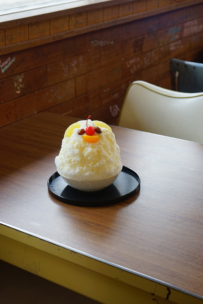 빙수와 소바를 파는 분식점으로, 이토만(糸満)의 옛 시장 골목에서 1960년부터 영업하고 있다. 오래된 테이블과 레코드판 등의 소품으로 가득한 실내에서 향수가 느껴진다. 간판 메뉴인 시로쿠마(白熊, 백곰) 빙수는 연유를 뿌린 얼음 위에 과일과 팥으로 곰 얼굴 모양을 낸 것. 얼음에 딸기 맛, 멜론 맛 등 알록달록한 시럽을 뿌린 가키고리(かき氷), 오키나와의 팥죽인 젠자이(ぜんざい) 위에 얼음을 얹은 빙수도 있다. 젠자이는 팥알 크기가 큰 것이 특징인데, 이곳에서는 직접 쑤어 만든다.