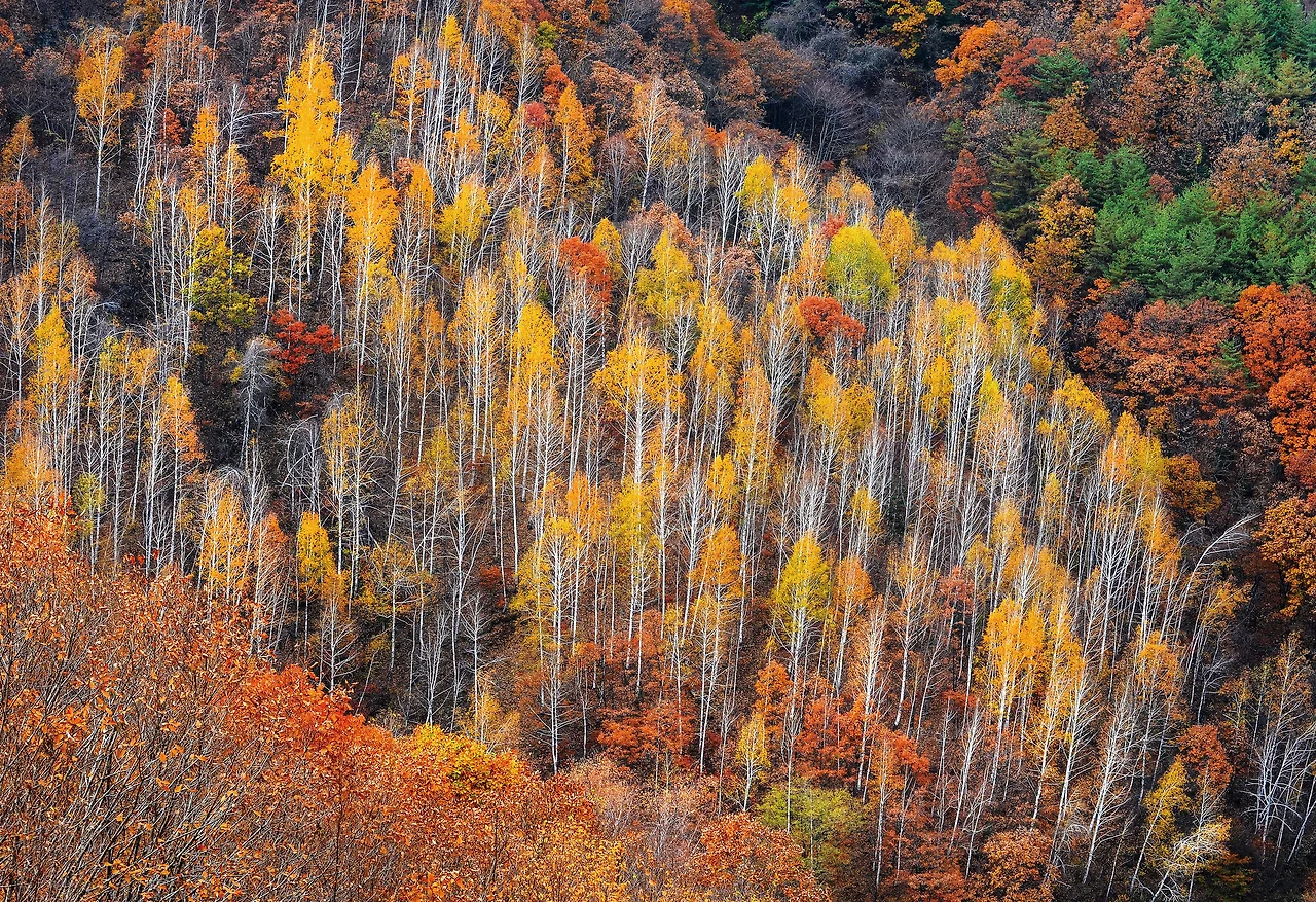 북쪽으로는 DMZ의 철책선, 동쪽으로는 내설악의 수려한 산자락, 남쪽으로는 병풍같이 둘러싼 방태산, 서쪽으로는 북한강 상류가 굽이도는 인제. 그야말로 사방이 꽉 막힌 이 첩첩산중에는 사시사철 수많은 트레커가 모인다. 계절마다 변하는 다채로운 풍광은 트레킹의 묘미를 더할 터. 산야를 울긋불긋하게 물든 단풍이 지나가고 낙엽이 바스락거리는 늦가을에는 사색을 즐기며 산행을 이어가기 좋다. 내설악과 방태산의 산악 절경도 빼어나지만, 이 시기엔 기왕이면 인제읍 남서쪽에 솟아 있는 응봉산으로 향해보자. 산이 속한 원대리 일대에는 우리나라 최고의 자작나무 군락지가 형성되어 있다. 빽빽한 순백의 자작나무 사이로 웅웅대는 바람 소리를 들으며 호젓하게 숲길을 거닐 수 있는 곳이다. 총 4개의 탐방로가 나있는데, 경사가 완만한 1~2코스에 자작나무가 모여 있다. 가벼운 산행이 좀 아쉽게 느껴진다면 숲 인근에 난 MTB 자전거길을 따라 페달을 밟는 것도 가능하다.