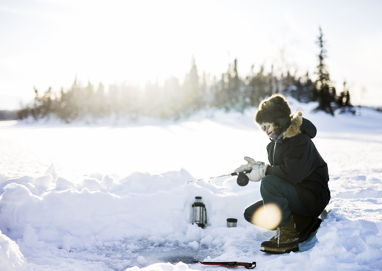 빙판을 깨고 즐기는 얼음낚시는 옐로나이프의 겨울을 즐기는 색다른 방법 중 하나다. 전문 낚시 가이드가 동반하는 체험 투어에는 얼음낚시 장비와 차량 서비스를 제공하고, 갓 잡은 생선을 요리하는 서비스도 포함되어 있다.