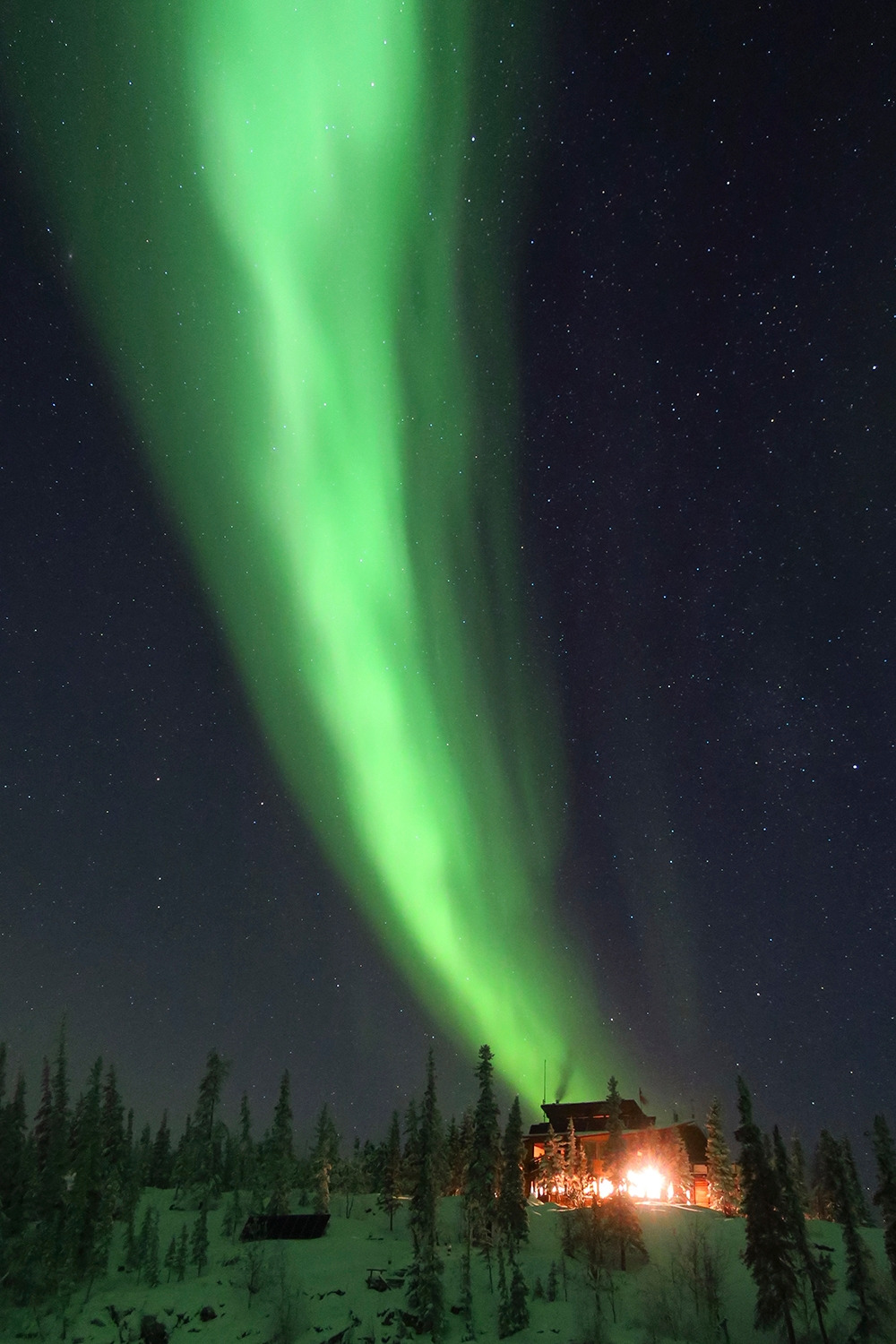 트라우트 록 로지(Trout Rock Lodge)는 도심의 불빛과 차량의 소음에서 완벽히 동떨어진 섬 위에 있다. 오로라 오벌 바로 아래에 위치한 덕분에 3일간 머문다면 오로라 관측 확률이 98퍼센트에 이른다고. 한낮에는 개 썰매 라이딩과 조류 관찰, 베리 채집, 낚시, 하이킹이 가능하고, 밤에는 북반구 쪽에서도 오로라 관측을 즐길 수 있다. 무엇보다 로지가 자리한 노스 암 오브 그레이트 슬레이브 호수(North Arm of Great Slave Lake)는 낚시하기 최고의 장소다. 이곳을 찾은 낚시꾼의 99퍼센트가 팔뚝만 한 강꼬치고기를 잡는 게 다반사라고.