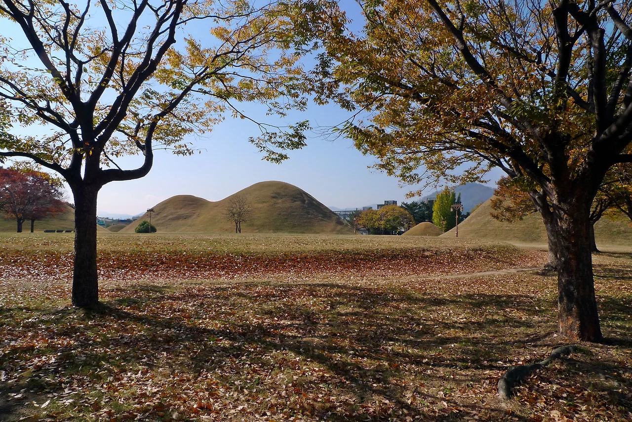 하늘에서 찍은 경주 시내 사진을 보면 현대적인 집과 건물 사이에 집채보다 큰 고분이 군데군데 모여 장관을 이룬다. 이러한 고분이 하나의 군락을 형성하는 곳이 대릉원과 노동리 고분군이다. 대부분의 여행자가 대릉원은 가면서 노동동과 노서동의 고분군은 그냥 지나치는 경우가 다반사다. 입장료가 있는 대릉원과 달리 이들 고분군은 무료로 방문할 수 있는데 말이다. 노동리 고분군의 미덕은 오래된 무덤이 경주 시내 한복판에서 오늘날의 사람, 건물과 어우러져 있다는 점이다. 관광 명소라기보다 시민이 즐겨 찾는 산책 장소이자 아이들의 놀이터인 셈이다. 그중 봉황대는 봉분 위로 느티나무 몇 그루가 머리 장식마냥 멋스럽게 늘어서 있는 가장 큰 고분이다. 이곳에서 시작해 대릉원을 지나고 첨성대와 월성, 계림, 안압지, 국립경주박물관까지 걸어서 모두 둘러볼 수 있다. 햇살이 고분의 능선을 따라 부드럽게 퍼지는 아침이나 낮 시간에 방문해도 좋지만, 고분의 멋이 가장 잘 드러나는 때는 해가 막 넘어간 저녁 무렵. 가로등과 조명등이 하나둘 켜지고 어스름이 내려앉은 하늘을 배경으로 능선이 부드러운 곡선을 드러날 때면 일상에 찌든 마음 한구석이 말랑말랑해질 것이다.