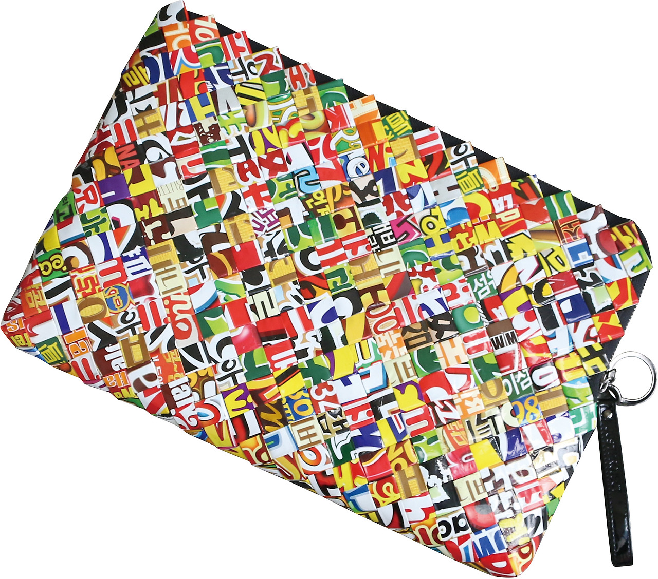 쓰레기에 대한 애정을 담아 쓰레기로 일상의 물건을 만드는 저스트 프로젝트의 ‘I was foil’ 컬렉션 파우치. 동전, 카드 지갑으로 사용 가능한 스몰 사이즈부터 아이패드, 노트북 케이스로 적당한 라지 사이즈까지 선보인다.