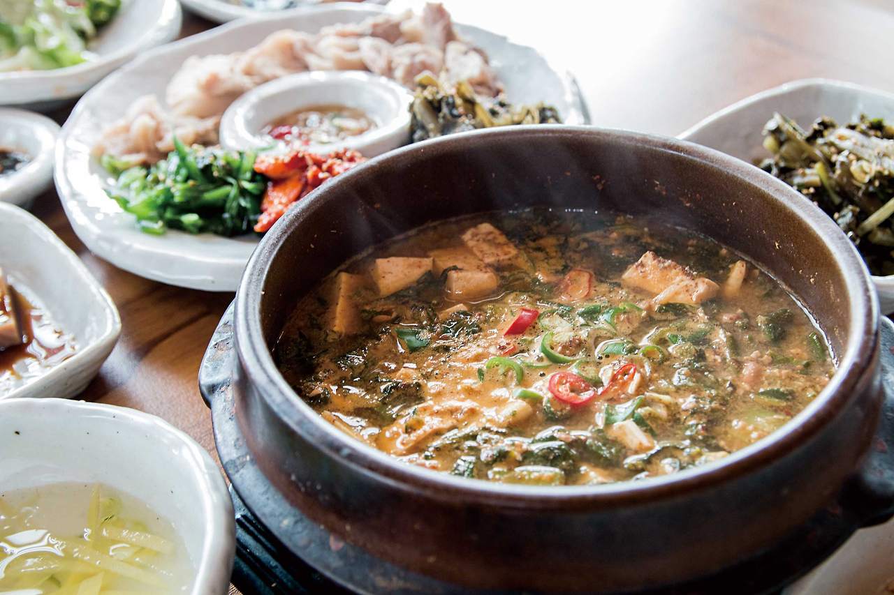 서해를 낀 당진의 대표 먹거리로 실치, 가재미 등 해산물을 꼽곤 한다. 그러나 논밭이 지천에 널린 당진에서 꺼먹지 또한 빼놓을 수 없는 향토 음식이다. 가을에 수확한 무청을 소금에 절인 뒤 기름에 볶아 먹는 꺼먹지는 당진과 이 일대의 밥상에서 무시로 올라오는 반찬 중 하나다. 일상에서 먹는 소박한 음식인 까닭에 도리어 일반 식당에서 접하기가 어려웠는데, 최근 이를 내세운 식당이 하나둘 생기기 시작했다. 솔뫼성지에서 신평면으로 향하는 길가에 자리한 소들강문(041 363 9494)은 꺼먹지를 전문하는 농가 식당이다. 식당 텃밭에서 기른 콩과 파 등 각종 채소로 찬을 만들고, 대표 메뉴인 꺼먹지 백반(1인분 1만5,000원)을 주문하면 꺼먹지를 넣은 구수한 된장찌개를 메인 메뉴로 낸다. 얼핏 우거지와 비슷한 맛을 내는 꺼먹지는 먹을수록 짭조름한 맛이 우러나 찌개의 풍미를 더한다. 꺼먹지, 사과, 해초를 곁들여 먹는 수육과 조개젓, 고등어, 두부전 등 정갈한 반찬 또한 윤기가 번지르르한 당진 쌀밥의 맛을 돋우기에 그만이다.
