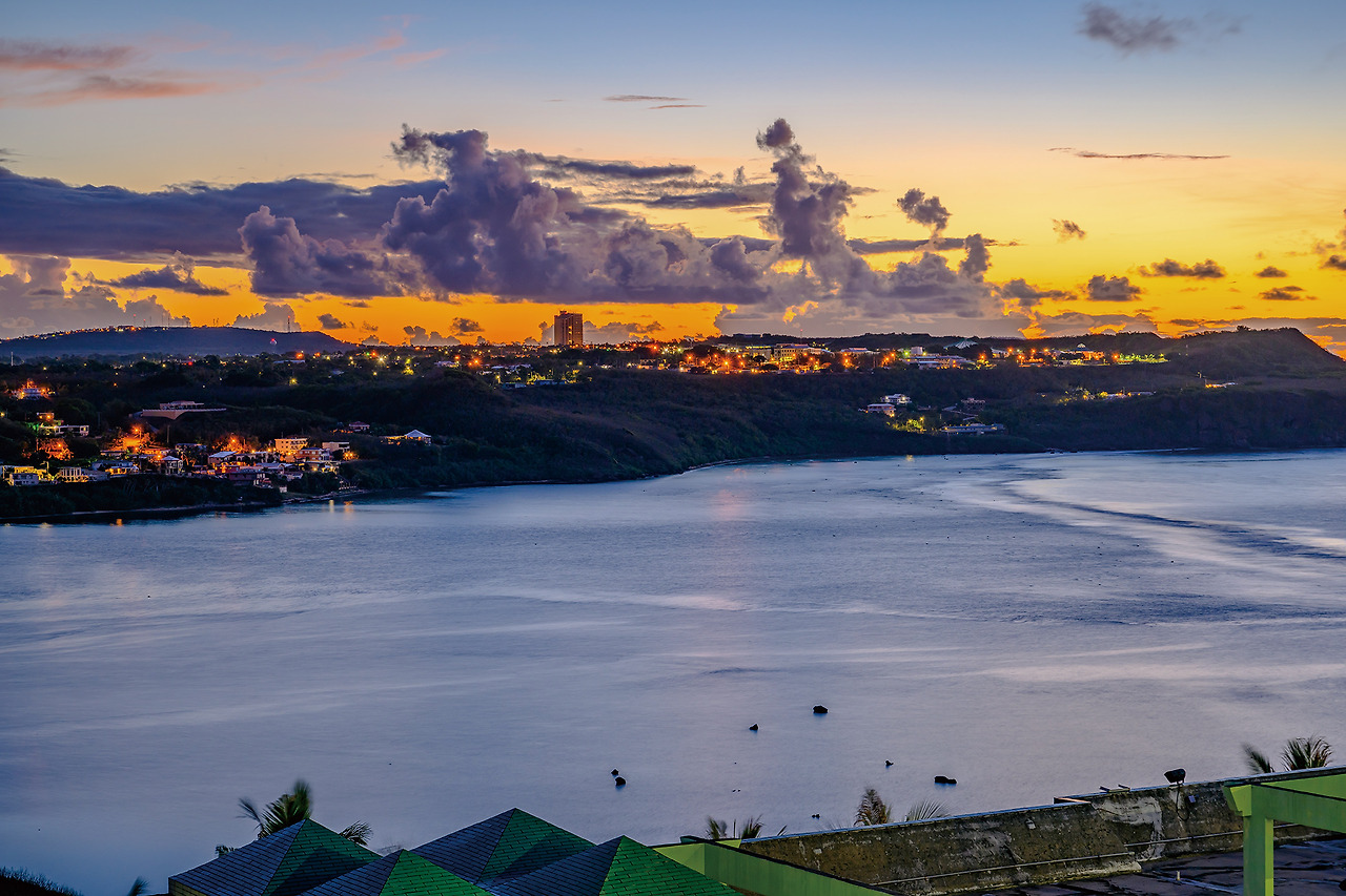 "괌 도시 풍경과 바다, 떠오르는 해를 동시에 볼 수 있는 곳이다. 일출 사진을 촬영할 때는 늘 30분쯤 여유 있게 출발해 동트기 전의 여명까지 담곤 하는데, 괌의 일출은 특히 이때가 아름다웠다."