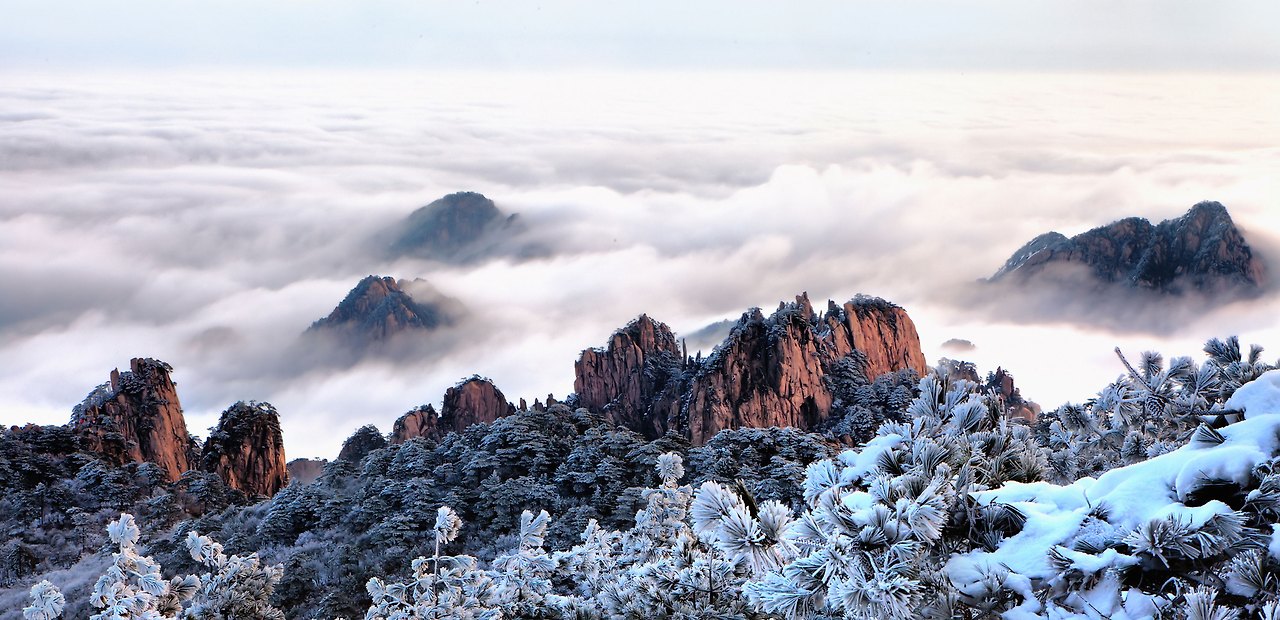 “황산에 오르고 나면 더는 다른 산이 보이지 않는다”던 명나라 학자 서하객이 남긴 말처럼, 아득한 운해 사이로 슬며시 모습을 드러내는 황산(黃山)의 비경은 한 폭의 동양화를 떠올리게 한다. 1억 년 전 형성된 독특한 기암괴석과 노송이 어우러진 빼어난 경관 덕분에 2008년 세계 자연유산에 등재되기도 했다. 어느 계절에 찾아도 아름답지만, 푸르른 산봉우리마다 새하얀 눈이 살포시 내려앉는 12월의 황산은 좀 더 특별한 모습으로 다가온다. 순백의 절경을 즐기지 못하더라도 실망할 필요는 없다. 평소 변화무쌍한 산악 기후 탓에 흐린 날이 잦은데, 건조한 겨울철만큼은 한층 청명한 날씨를 자랑하는 것. 그 덕분에 하늘 아래 신비로운 황산의 운해를 마음껏 구경할 수 있다. 게다가 평소에 쉽게 허락하지 않는 일출까지 볼 수 있으니 산 속 호텔에서 하룻밤 머물러봐도 좋겠다. 영화 <와호장룡>의 촬영지인 페이추이구(翡翠谷)와 거대한 기암괴석인 페이라이시(飛來石)를 지나 뜨끈한 온천에서 몸을 녹이며 겨울 황산 여행을 마무리하자.