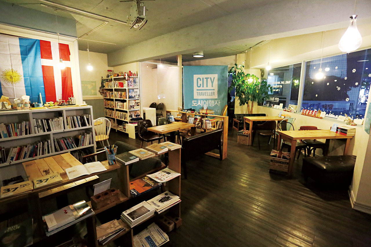 ‘삶은 여행’이라는 모토를 내 건 카페가 있다. 아니, 서점이자 갤러리. 그도 아니면 여행자를 위한 사랑방이라 해도 무방한 곳. 대전의 원도심에 가면 카페 겸 서점 도시여행자가 기다린다. 여행을 좋아하는 두 남녀가 옛 것과 새 것이 공존하는 대흥동 거리에 매력을 느껴 평소 꿈꾸던 공간을 이곳 거리에 손수 일궜다. 도시여행자에는 각종 여행 서적과 독립출판물이 있고, 주인장이 여행과 일상 속에서 수집한 물건도 있다. ‘우유니 딸기 사막’ ‘노란 잠수함’ 같은 작명 센스가 돋보이는 음료를 마시며 대전 여행에 관한 정보도 얻을 수 있고, 음악, 축구, 백패킹 등 다양한 주제로 소모임도 열린다. “일상 속에서 소중한 가치를 놓치지 않고 살고 싶다”는 박은영 대표의 말처럼 53제곱미터 남짓한 2층 건물 안에서만큼은 여행하듯 사는 것이 가능해 보인다.