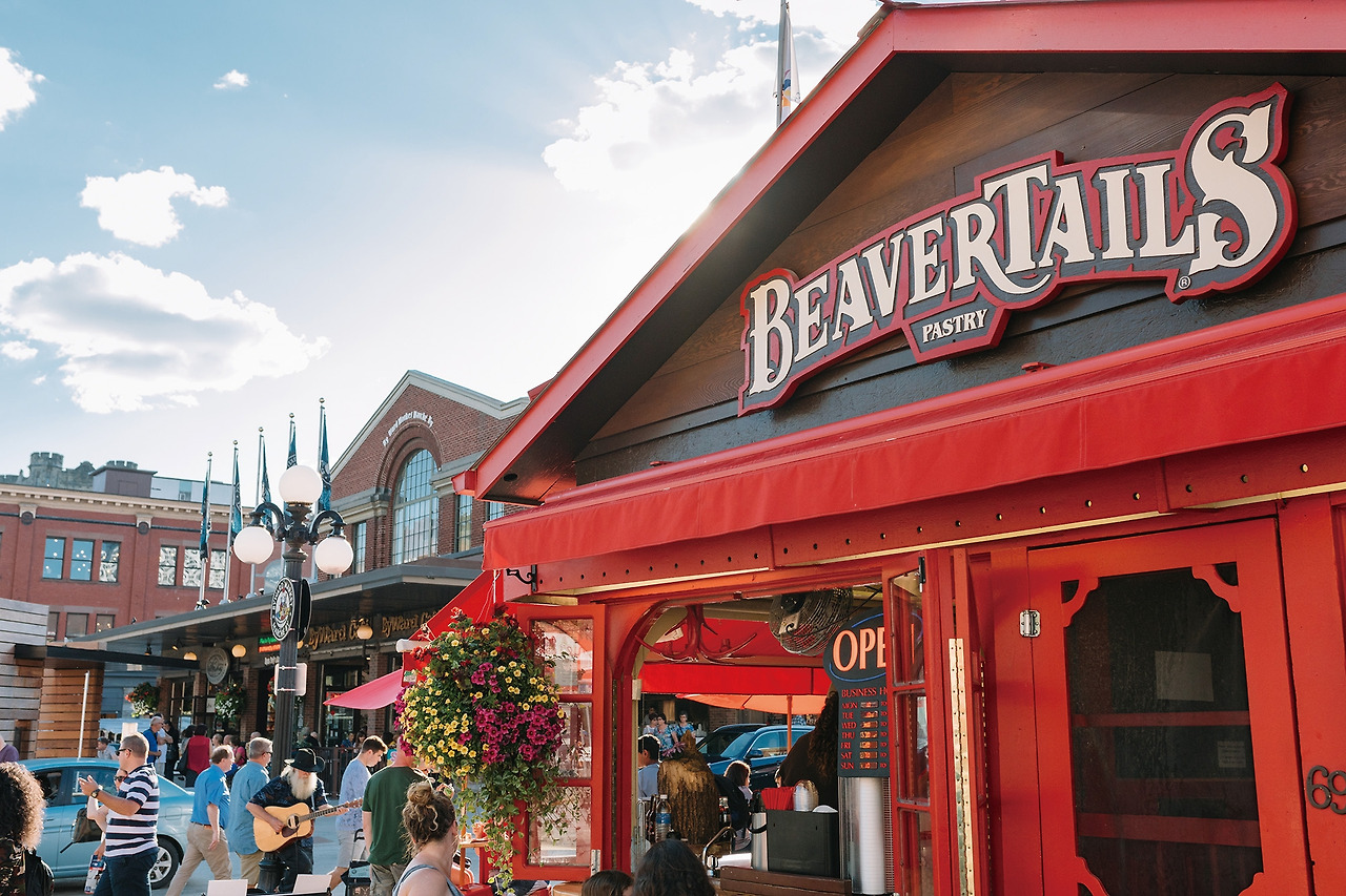 오타와 다운타운과 다우스 레이크(Dow’s Lake) 사이를 잇는 7.8킬로미터의 리도 운하(Rideau Canal). 2007년 유네스코 세계문화유산에 등재된 이 운하는 겨울이면 세계 최장의 아이스링크로 변신한다. 의외로 이곳에서 기괴한 국민 간식이 탄생했다. 널찍하게 편 페이스트리를 튀겨 시나몬 가루와 곁들여 먹는 비버테일(Beavertails). 비버 꼬리를 연상시킨다 하여 이름 붙인 이 간식은 1978년 리도 운하 아이스링크의 간이 마켓에서 첫선을 보이며 인기를 끌었고, 곧 바이워드 마켓(ByWard Market) 초입에 동명의 전문점이 들어섰다. 이후 100개 이상의 프랜차이즈로 확장하며 캐나다의 전국구 간식으로 자리매김한 것이다. 전설의 비버테일 1호점에서 자신의 취향에 맞는 토핑을 골라 비버의 꼬리를 화려하게 바꿔보자. 헤이즐넛부터 치즈케이크, 바나나 등 16종류의 선택지를 앞에 두고 잠시 혼란에빠지며 말이다. 바이워드 마켓은 연중 크리스마스와 새해를 제 외한 363일을 운영한다. 신선한 지역 식자재를 비롯해 팔라펠, 커리, 초밥 등을 내는 부스가 모여 있어 세계 각국의 맛을 경험하기에도 좋다.