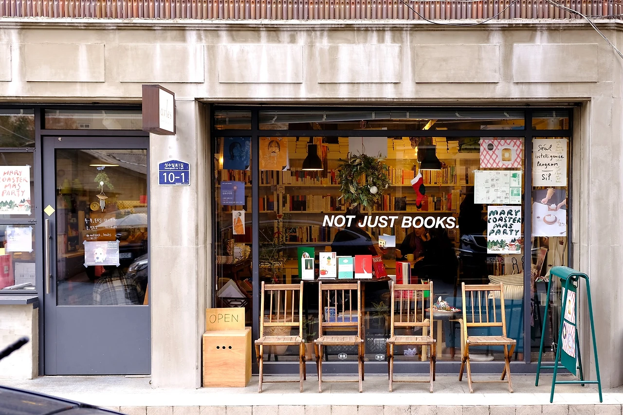 ⓘ커피 4,000원, 12pm~9pm, 금·일요일 6pm까지, 비정기 휴무,인스타그램 notjust_books