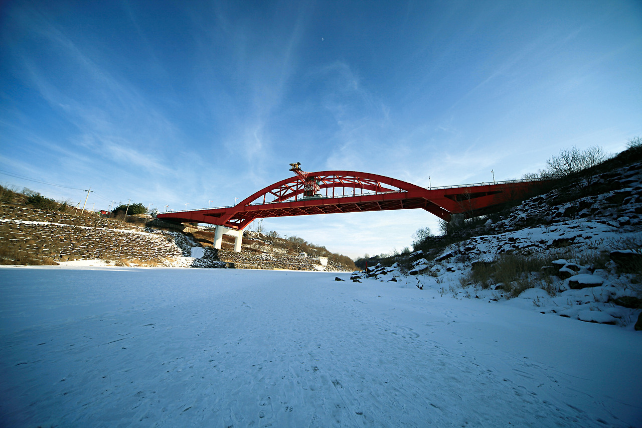 ‘철마는 달리고 싶다’라는 문구로 대변되는 철원에서 안보 관광이 전부라는 편견은 버리자. 한국전쟁의 상흔이 깃든 곳곳의 관광지 곁에는 빼어난 자연 풍광이 둘러싸고 있으니 말이다. 동해안의 고성을 제외하면 사실상 우리나라 내륙의 최북단이나 다름없는 철원의 자연은 겨울의 매서운 한파와 폭설 속에서 저만의 운치를 더한다. 우선 꽁꽁 얼어붙은 한탄강이 이색 액티비티를 준비한다. 얼어붙은 강을 따라 걷는 한탄강 얼음 트레킹 축제가 열리는데, 강 위를 걷기 때문에 송대소의 주상절리와 승일교 앞의 장대한 얼음절벽 그리고 눈으로 파묻힌 고석정의 풍광을 보다 가까이에서 바라볼 수 있다. 노동당사 인근의 토교 저수지 일대는 시베리아에서 찾아온 재두루미의 중간 기착지 역할을 하면서 수많은 사진가를 불러 모은다. 물론 안보 관광지도 이 계절에 빛을 발한다. 서두에 언급한 문구의 주무대인 월정리역은 경원선의 우리나라 종착지. 순백의 설원을 배경으로 쓸쓸하게 서 있는 옛 증기기관차의 잔해와 텅 빈 역사는 한 장의 여행 엽서 속 풍경 같다.