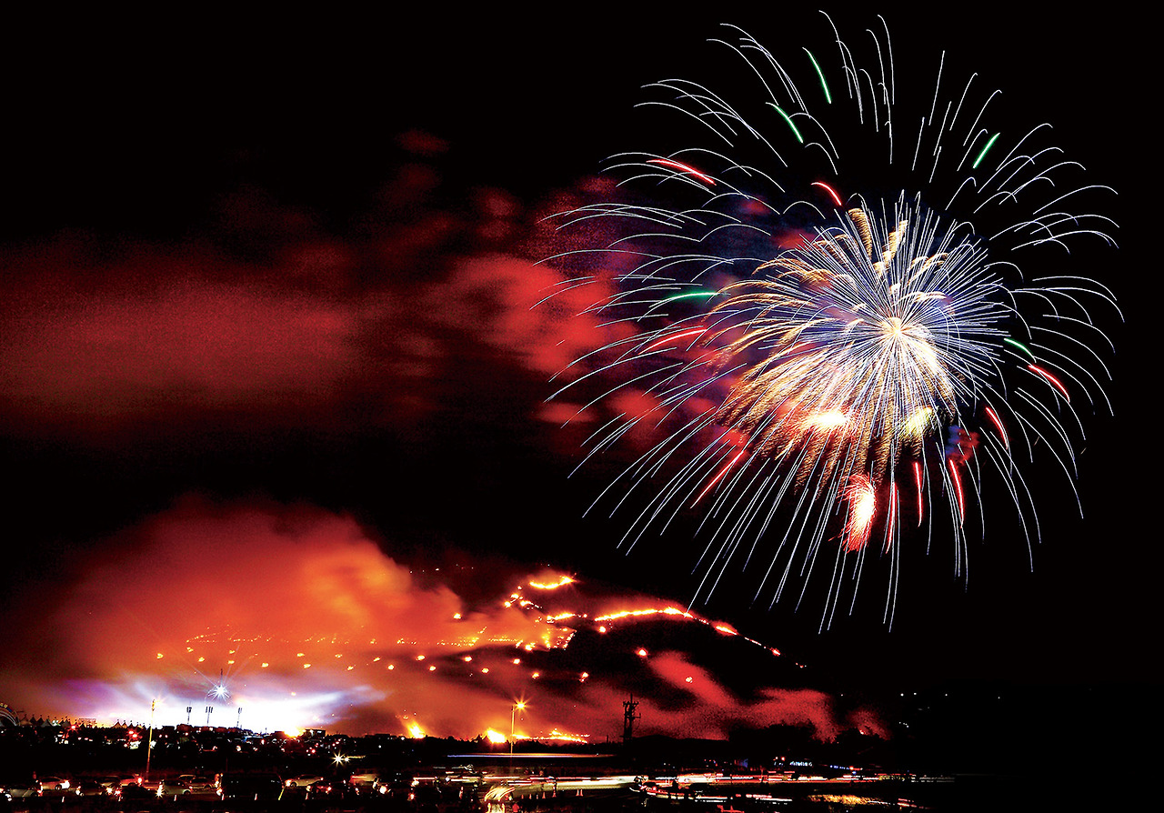 세상에서 가장 재미나면서도 고약한 일이 강 건너 불구경이라 했던가. 매년 봄 제주 애월읍 서부관광도로변에 솟은 새별오름도 거대한 불을 피워 방문객을 불러 모은다. 소와 말을 방목하기 위해 초지의 해묵은 풀을 없애고 해충을 구제하는 들불 행사의 현장에서 말이다. 늦겨울에서 초봄 사이 들판에 불을 놓는 방애(액을 막는 행위를 뜻하는 제주 방언)는 제주의 오랜 목축문화였지만, 오늘날에는 제주 도민의 무사 안녕과 새해의 행운을 기원하는 향토 축제로 거듭났다. 19년째 명맥을 이어온 제주들불축제는 제주의 돌 문화를 상징하는 방사탑에 불씨를 점화하면서 막을 연다. 축제의 절정은 단연 새별오름을 활활 태우는 의식. 활화산처럼 타오르는 오름을 지켜보며 사람들은 해묵은 것을 보내고 새로운 소망을 빈다. 불구경을 하기 전, 낮에 새별오름에 올라 주변의 아름다움을 만끽해두자. ‘샛별같이 빛난다’는 이름에 걸맞게 빼어난 절경을 자랑하니 말이다. 비양도까지 펼쳐지는 바다 풍광을 감상하고, 오름 잔디 썰매 타기, 들불 연날리기, 오름불 놓기, 횃불 대행진 같은 흥미로운 전통 놀이를 즐겨도 좋다.