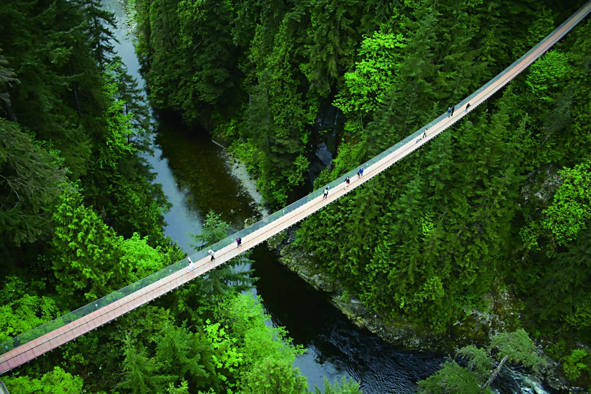 1974년, 심리학 연구원 2명이 한 흔들다리 위에서 흥미로운 실험을 진행한다. 아찔한 흔들다리를 건넌 남성에게 미녀 조사원이 다가가 설문조사를 한 뒤 전화번호를 건네도록 한 것. 그 결과 번호를 받은 남성이 안전한 다른 다리를 건넌 비교 집단에 비해 훗날 여성에게 전화를 건 비율이 압도적으로 높았다. 이는 흔들다리 때문에 높아진 심박수를 이성에 대한 호감으로 착각했기 때문이라고. 이 심장 뛰는 실험 장소는 바로 밴쿠버 시내에서 차로 10분 거리에 있는 캐필라노 현수교(Capilano Suspension Bridge)다. 1889년에 캐필라노 강(Capilano River) 사이를 연결한 세계에서 가장 아찔한 보행자용 현수교로, 높이 70미터에 길이가 137미터에 달한다. 과연 다리를 건너는 사람을 흥분하게 만들 만한 곳이다. 혹시나 끊어지면 어쩌나 싶은 걱정은 접어두자. 1956년 콘크리트로 감싼 두꺼운 강철 케이블로 보강해 다리 위를 뛰어도 끄떡없으니까. 스릴 넘치는 모험을 이어가고 싶다면 현수교 위로 우뚝 솟은 울창한 캐필라노캐니언(Capilano Canyon)으로 향하면 된다. 거대한 더글러스 퍼(Douglas Fir) 소나무 사이를 잇는 7개의 공중 다리 트리톱스 어드벤처스(Treetops Adventures)와 절벽 위에 설치한 유리 보행로 클리프워크(Cliffwalk)를 거닐 수 있다.