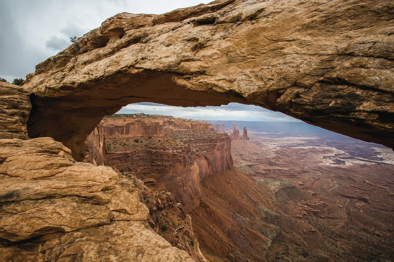 유타 주 전체에 5개의 국립공원과 43개의 주립공원이 있는데, 국립공원은 모두 콜로라도 고원 지대에 속한다. 그중 캐니언랜즈 국립공원(Canyonlands National Park)이 가장 큰 규모로, 약 1,366제곱킬로미터에 달한다. 이곳에는 부유하는 대륙 같은 거대한 메사와 황무지가 나무 덩굴처럼 이어지고, 아직도 많은 지역엔 사람의 발길이 닿지 않고 있다. 그랜드 뷰 포인트 로드(Grand View Point Road)가 가장 많이 사용하는 접근로인데, 이 길은 데드 호스 포인트 주립공원에서 이어진다. 국립공원 입구를 지나 차로 약 10분쯤 가면, 메사 뷰 아치(Mesa View Arch)로 이어지는 트레일에 도착할 수 있다. 이 아치는 공원의 상징 같은 자연물이다. 트레일 전용 주차장에서부터 DSLR 카메라를 들고 대기 중인 여행객 무리가 눈에 띈다. 1킬로미터 남짓한 트레일의 끝자락에 자리 잡은 아치는 단순하면서 오묘하다. 낭떠러지의 시작점에 단 1개가 덩그러니 놓여 있다. 그 아래로 파도 치듯 멀리 캐니언랜즈의 한 조각 풍경이 뻗어나간다. 한낮 돌다리 같은 메사 뷰 아치는 사실 질기고 고독한 생존자다. 물과 바람의 침식으로 주변의 모든 암석이 자취를 감추던 수천만 년을 오롯이 살아남았으니까.