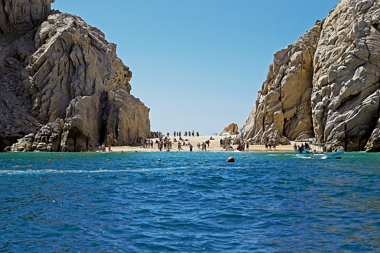 에메랄드빛 코르테스 해의 끝자락에는 암벽 사이로 좁다란 해변이 형성되어 있다. 플라야 델 아무르(Playa del Amour), 이른바 ‘사랑의 해변’이라 불리는 곳이다. 해변에는 파라솔 아래 백사장에서 느긋하게 일광욕을 즐기거나 바다에서 스노클링을 하며 유유자적 시간을 보내는 여행자로 가득하다. 흥미로운 점은 반대편에 펼쳐진 또 다른 해변 플라야 델 디보르시오(Playa del Divorcio)의 존재. ‘이혼의 해변’이란 뜻을 지닌 이곳은 태평양과 면한 탓에 파도가 높아 바다에 들어가는 것을 금한다. 인적 드문 쓸쓸한 풍경이 그와 같은 대조적인 작명에 반영된 듯하다. 보트를 타고 조금 더 나아가자 마침내 웅장한 엘 아르코 앞에 도착한다. 마치 용이 허리를 숙여 바닷물을 삼키듯 아치형으로 휜 육중한 석회암이 시야에 들어온다. 아치 너머로 펼쳐지는 태평양의 수평선은 이곳이 바하 캘리포니아의 땅끝이란 사실을 일깨워준다.